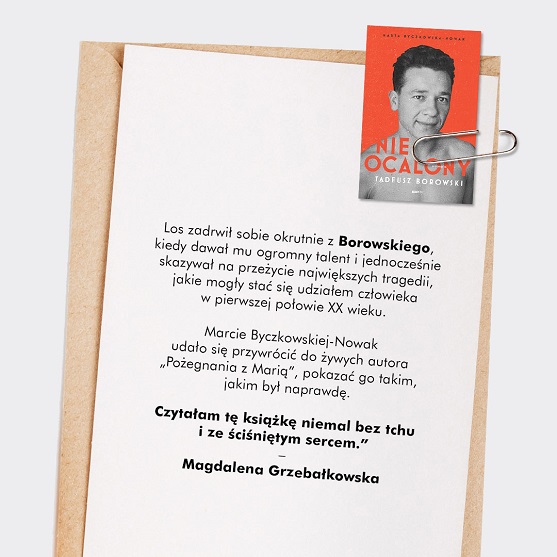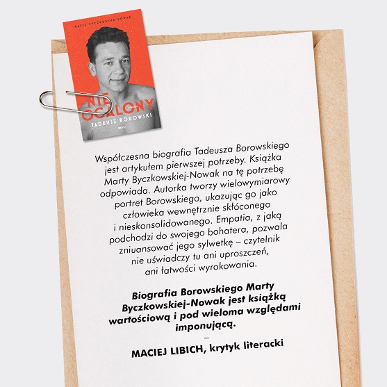Współczesna biografia Tadeusza Borowskiego jest artykułem pierwszej potrzeby. Książka Marty Byczkowskiej-Nowak na tę potrzebę odpowiada. Autorka tworzy wielowymiarowy portret Borowskiego, ukazując go jako człowieka wewnętrznie skłóconego i nieskonsolidowanego. Empatia, z jaką podchodzi do swojego bohatera, pozwala zniuansować jego sylwetkę – czytelnik nie uświadczy tu ani uproszczeń, ani łatwości wyrokowania. Biografia Borowskiego Marty Byczkowskiej-Nowak jest książką wartościową i pod wieloma względami imponującą.