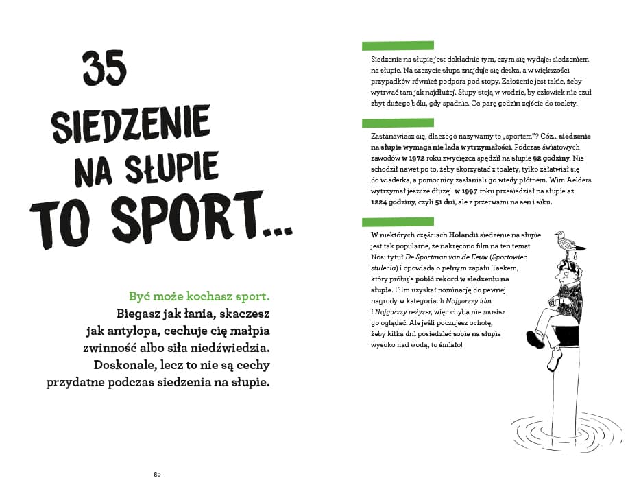 NIE czytaj tej książki, jeśli już wiesz, że: – siedzenie na słupie jest dziedziną sportu (NUDA!), – istnieje utwór muzyczny, który trwa 1000 lat (NUUDA!), – co piąty człowiek sika do basenu (NUUU… Co? Czekaj! Serio?), – możesz spędzić wakacje w prawdziwym więzieniu (NUU… Wow! A gdzie?), – pierwszy telefon komórkowy ważył kilogram (Co? Jak to?). Te i wiele innych ciekawostek możesz przeczytać w tej NUUUUUDNEJ – ale przede wszystkim zabawnej – książce! Mathilda Masters jest podróżniczką i odkrywczynią. Jej praca polega na poznawaniu nowych kontynentów oraz krajów. Mathilda wie wszystko na prawie każdy temat: o zwierzętach, roślinach, historii, języku i jeszcze dużo więcej. Madeleine van der Raad chciała zostać weterynarzem, ale pasja rysowania zwyciężyła, więc ukończyła akademię sztuki i została ilustratorką. Studiowała w Maastricht i Groningen. Zilustrowała wiele książek dla dzieci oraz podręczników. Powyższy opis pochodzi od wydawcy.Szczegółowe informacje na temat książki 101 nieziemsko nudnych faktów
