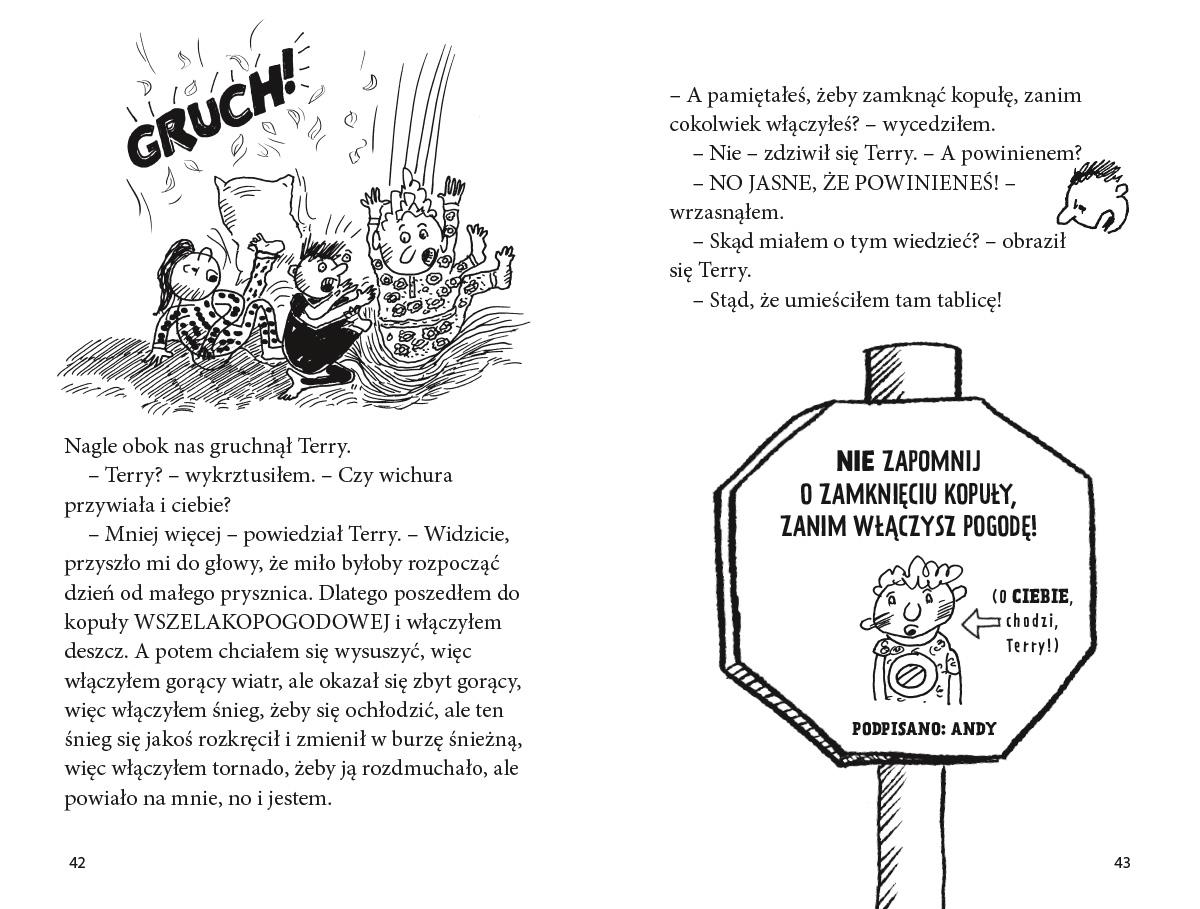 Andy i Terry mieszkają w stusześćdziesięciodziewięciopiętrowym domku na drzewie (mieli stupięćdziesięciosześciopiętrowy, ale się rozbudowali). A ten domek jest najfajniejszy na świecie! Znajdziecie tu między innymi: ujeżdżalnię kangurów, chatkę z piernika (w której mieszka miła starsza pani), Przedsiębiorstwo Rozwoju i Udoskonalania Papierowych Samolocików (w skrócie PRUPS) oraz domek na drzewie (zgadza się, mają domek na drzewie w domku na drzewie!). No, na co czekacie? Właźcie!