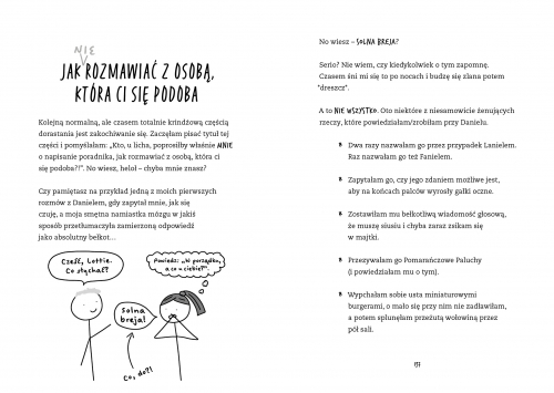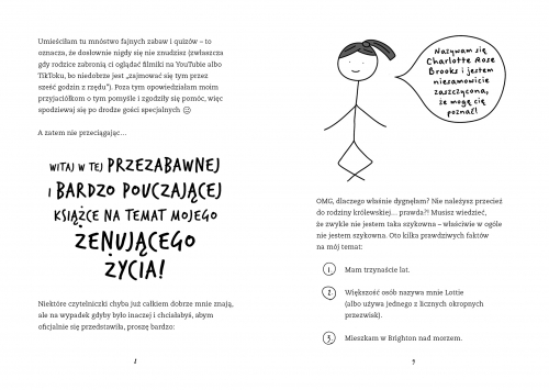 W „Absolutnie szalonym dzienniku” znajdziemy mnóstwo zabawnych sytuacji, takich jak nieudane randki, problemy z włosami czy wpadki na szkolnych imprezach. Lottie potrafi z każdej sytuacji wyciągnąć coś zabawnego, a jej komentarze i przemyślenia rozbawią każdego czytelnika. Dziennik Lottie to jednak nie tylko humor. To również opowieść o dorastaniu, o problemach z akceptacją siebie i o poszukiwaniu swojego miejsca w świecie. Lottie, mimo swojej szalonej natury, jest bardzo wrażliwą i empatyczną osobą, która potrafi zrozumieć i wesprzeć swoich przyjaciół. Interaktywna forma dziennika to dodatkowy atut tej książki. Czytelnik może razem z Lottie wypełniać quizy, rysować, pisać i komentować jej wpisy. Dzięki temu staje się częścią jej świata i może jeszcze lepiej wczuć się w jej sytuację. „Absolutnie szalony dziennik Lottie Brooks” to idealna lektura dla młodzieży, która lubi się śmiać i szuka książek, z którymi może się utożsamić.