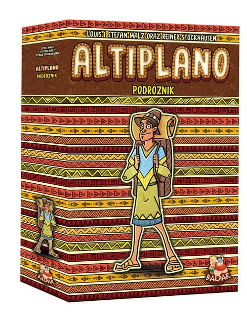 Altiplano. Podróżnik. Dodatek do gry Altiplano. Autor: Louis & Stefan Malz, Reiner Stockhausen Ilustracje: Klemens Franz , atelier198 Wydawnictwo: Baldar Czas gry: 60-120 minut Wiek: 12+ Liczba graczy: 2-5 Zawartość gry: biały pionek podróżnika, 5 dobudówek podróżnika dla każdego z graczy, 5 drewnianych znaczników w kolorach graczy, płytka Punkt handlowy, 30 różowych opali, 36 znaczników punktów, 1 notes punktacji, 5 skróconych opisów kart Patentów, 66 kart, 1 instrukcja Na wyżynach Ameryki Południowej pojawił się podróżnik. Zaplanuj swoje ruchy tak, aby go spotkać. Dzięki niemu zyskasz patenty, które sprawią, że staniesz się bardziej przedsiębiorczy. Wymieniaj w punkcie handlowym towary na drogocenne opale i przygotuj się na nadchodzące wydarzenia. Dodatek „Podróżnik” sprawia, że planowanie ruchów odgrywa znacznie ważniejszą rolę, a dostęp do zasobów jest bardziej interaktywny. Wykupienie patentów od podróżnika otworzy zupełnie nowe możliwości, które umożliwą powiększenie Twojego majątku, a nieprzewidziane zdarzenia wymogą na Tobie spontaniczne decyzje, które będą miały wpływ na weryfikacje śmiałych planów. Dążenie do sukcesu na tym jałowym terenie będzie zupełnie nowym wyzwaniem!