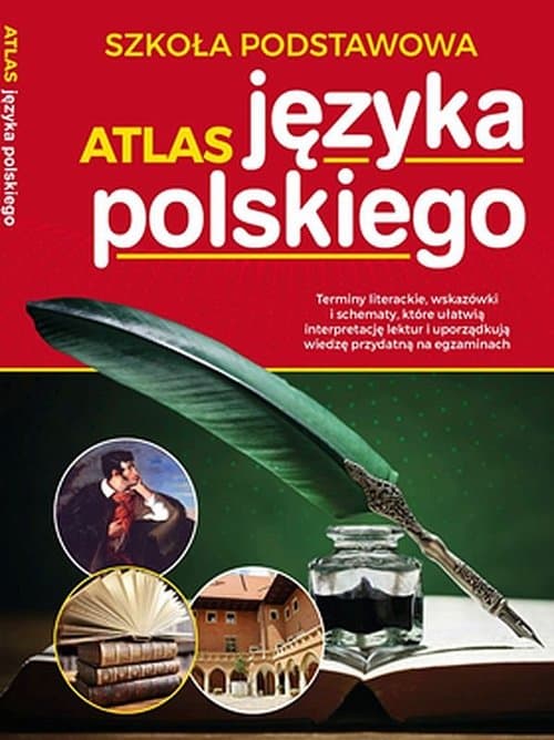Atlas języka polskiego to nieoceniona pomoc w porządkowaniu wiedzy przydatnej na lekcjach oraz egzaminach. Zawiera liczne wskazówki ułatwiające interpretację lektur i czytelne schematy, które pomagają przyswoić najważniejsze terminy literackie. Pozwala opanować tajniki rozmaitych form wypowiedzi, takich jak rozprawka, recenzja czy sprawozdanie, a dodatkowo zapewnia satysfakcję z samodzielnego odkrywania walorów literatury pięknej.