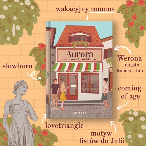 Od wieków Werona jest miastem jednej z najbardziej znanych par kochanków - Romea i Julii. Tytułowa Aurora nie myśli jednak o tym, kiedy pełna obaw postanawia coś zmienić w swoim życiu. Ten wyjazd ma być zmianą, nowym początkiem oraz źródłem pomysłów na dalsze lata życia. Aurora to stojąca u progu dorosłości nastolatka. Postanawia zdać się na los i wybrać w podróż, która pozwoli jej na odcięcie się od bolesnych doświadczeń.Werona to cudowne miejsce, w którym każdy znajdzie coś dla siebie. Aurora trafia na cudowną rodzinę oraz do wspaniałej przestrzeni - księgarni. To tam będą miały miejsce wydarzenia, które w znaczny sposób wpłyną na nastolatkę. "Aurora" to książka o mocno wakacyjnym klimatem. Słońce, bezchmurne niebo, wycieczki i swego rodzaju beztroska. W życiu nastolatki sporo się wydarzy, a ona sama nauczy się o sobie nowych rzeczy.Książkę czyta się bardzo szybko. Autorka swoim stylem pisania oraz prowadzeniem akcji potrafi zaciekawić i zaangażować czytelnika. Porusza również inne tematy, takie jak szukanie swojego miejsca na świcie, zgubny wpływ social mediów na życie młodych osób, pomysłu na siebie i na swoje życie. Główni bohaterowie są nastolatkami, jednak miałam wrażenie, że poznajemy ich dość powierzchownie. Autorka w głównej mierze skupia się na aktualnych wydarzeniach, a nie na ich przeszłości, a szkoda, ponieważ chciałabym ich lepiej poznać. Ta historia ma w sobie coś ulotnego, wakacyjnego, co ma przywoływać miłe wspomnienia. Czytelnik jest świadkiem wakacyjnej, pierwszej miłości. Jest ona nieco nieporadna, jednak przywołuje na myśl własne doświadczenia odbiorcy.Narracja prowadzona jest z dwóch perspektyw - Aurory oraz Willa. Jest to plus, ponieważ czytelnik może obserwować te same wydarzenia z perspektywy dwóch, zaangażowanych w relację osób. Pozwala również na poczynienie pewnych spostrzeżeń, na temat podejścia do życia i dalszych planów bohaterów. Przedstawiona historia nie jest niczym nowym i odkrywczym w literackim świecie, niemniej pozwala na relaks, uśmiech i czerpanie radości z czytania."Aurora" jest pięknie wydana, z dużą dbałością o szczegóły. Dobrze sprawdzi się jako lektura zarówno dla młodszych, jak i starszych czytelników. Myślę, że równie dobrze sprawdzi się do czytania podczas podróży.