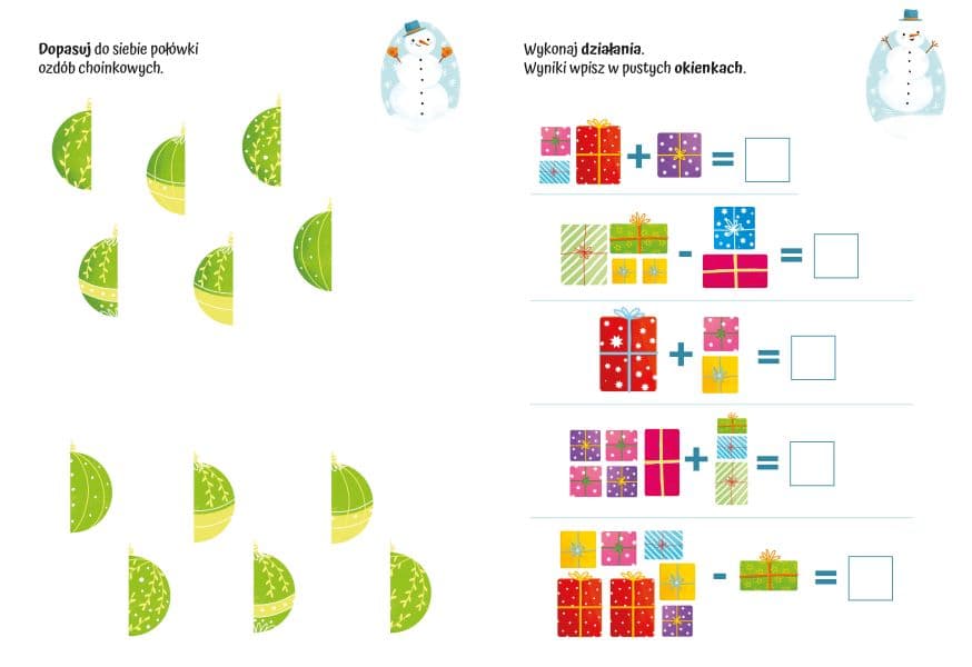 Dzięki ODPOWIEDNIO DOBRANYM i ZRÓŻNICOWANYM ZADANIOM dzieci mogą ćwiczyć wiele kompetencji, świetnie się przy tym bawiąc w towarzystwie sympatycznego bałwanka. Książka w przyjaznej dla przedszkolaków formie proponuje trening takich aktywności, jak: SZUKANIE RÓŻNIC, LABIRYNTY, KOLOROWANIE, RYSOWANIE PO ŚLADZIE, ŁĄCZENIE KROPEK, LICZENIE oraz PRZYKLEJANIE NAKLEJEK.