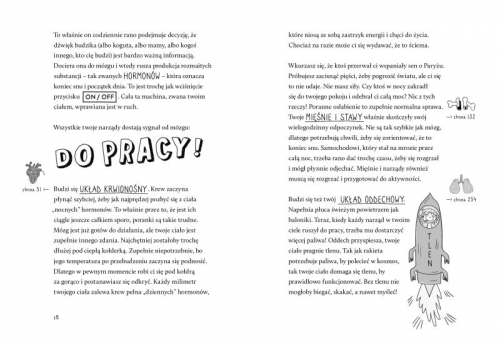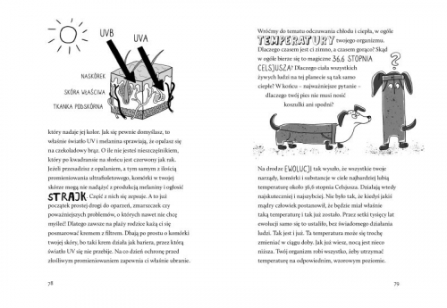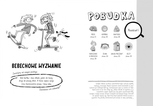 Gdyby Adam Mirek pisał szkolne podręczniki, to zdecydowanie wiedza sama wchodziłaby uczniom do głowy. W jaki sposób i o czym pisze, można się przekonać w publikacji o uroczym tytule Bebechy - czyli ciało człowieka pod lupą.Autor na 288 stronach opisał jeden dzień z życia człowieka, w niezwykle zabawny sposób przeskakując z tematu na temat, omawiając wiele narządów i układów w ludzkim ciele. Lektura pokazuje, że ciało jest genialnym wynalazkiem, w którym wszystko ze sobą współpracuje i nawet obleśnie i obrzydliwe rzeczy mają swój głęboki sens dla zdrowia organizmu.Poważne fakty na temat genetyki, składników krwi, funkcjonowania mózgu czy układu odpornościowego sąsiadują z informacjami o bristolskiej skali uformowania stolca, składzie śpiocha, czy informacjami dlaczego warto wiedzieć jakiego koloru jest nasz mocz... Adam Mirek w naukowy sposób tłumaczy także czy człowiek ma drugi żołądek na słodki deser i czy noszenie czapki w zimne dni jest gwarancją zdrowia.Bebechy to zabawna podróż po ludzkim organizmie, która tłumaczy mechanizmy działania i wskazuje zachowania sprzyjające zdrowiu. Jest lekturą odpowiednią dla dzieci w wieku szkolnym i wszystkich osób zainteresowanych tym tematem. Nawet jeśli wydaje się Wam, że macie całkiem dobrą wiedzę na temat ciała człowieka, na pewno dowiecie się z Bebechów czegoś nowego.Czytanie książki nie jest nużące dzięki urozmaiconym czcionkom, ramkom, podkreśleniom oraz oczywiście ilustracjom Kasi Cerazy. Można także znaleźć proste doświadczenia aktywizujące czytelnika.Bebechy zaskoczyły mnie bardzo pozytywnie, są świetnym połączeniem książki edukacyjnej i rozrywkowej.