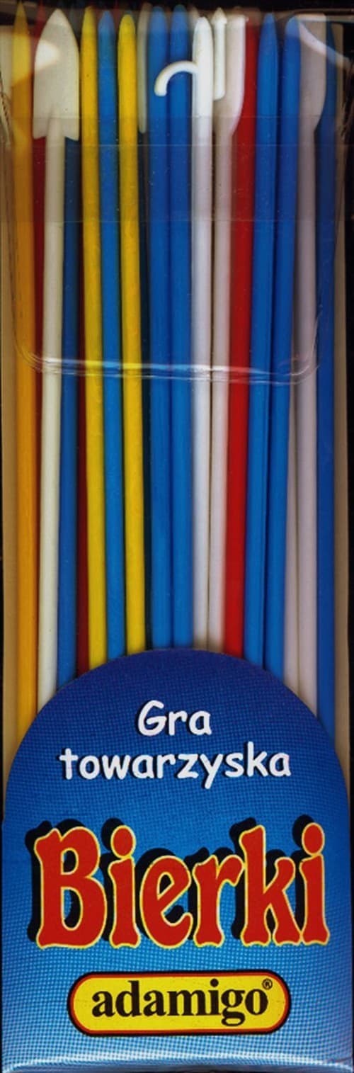 Bierki rozsypuje się na stole, następnie rozpoczyna się pojedyncze zbieranie przez poszczególnych graczy tak, by zdobyć jak najwyższą ilość punktów. Gracz traci kolejkę, gdy podczas wyciągania drgnie choćby jedna z pozostałych na stole bierek. Gra uczy cierpliwości i panowania nad ciałem oraz skupienia na wykonywanej czynności. Bierki to wspaniała gra towarzyska przeznaczona dla dowolnej liczby osób. Zestaw gry zawiera: - bierki różnego kształtu i o różnych wartościach punktowych, - 2 trójzęby, - 3 harpuny, - 3 wiosła, - 3 bosaki, - 24 oszczepy.