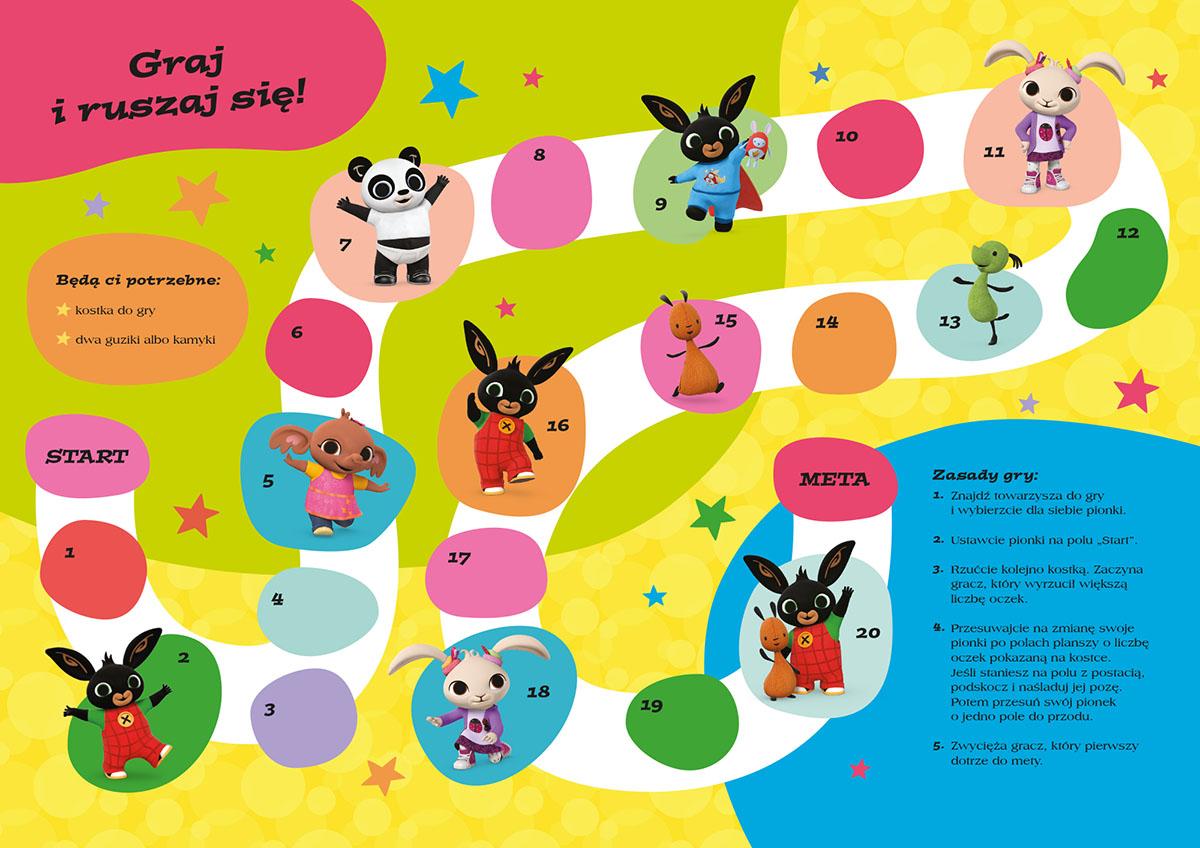 Dołącz do Binga, Flopa oraz ich przyjaciół i sprawdź, co robią, gdy na dworze pada śnieg! Rozwiązuj zadania, koloruj obrazki, przyklejaj naklejki i baw się dobrze! Wyjątkowe, zimowe wydanie Zeszytu zadań to urocze i pełne mroźnych motywów łamigłówki opracowane z myślą o najmłodszych fanach króliczka Binga. Są tu zadania różnego rodzaju – od prostych kolorowanek, poprzez pisanie i rysowanie po śladzie, łączenie w pary takich samych przedmiotów aż po wyszukiwanie ukrytych na ilustracjach postaci, a nawet… składanie z papieru zimowego lampionu. Każde dziecko, niezależnie od indywidualnych talentów i upodobań, znajdzie tu coś dla siebie. Wykonywanie najprostszych łamigłówek przyniesie kilkuaktowi satysfakcję z samodzielnie rozwiązanego zadania, a w trudniejszych, wymagających podpowiedzi albo pomocy manualnej zabawach z pewnością pomogą nieco starsi fani Binga!Szczegółowe informacje na temat książki Bing Zimowy zeszyt zadań z naklejkami
