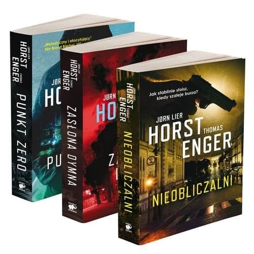 Pakiet składający się z trzech pierwszych kryminałów z serii "Blix i Ramm na tropie" autorstwa dwóch wybitnych norweskicj pisarzy Jorna Liera Horsta i Thomasa Engera: "Punkt zero" Tom 1. Oslo 2018. Była królowa biegów długodystansowych Sonja Nordstrom nie pojawia się na promocji swojej kontrowersyjnej autobiografii Wieczna jedynka. Jeszcze tego samego dnia dom Nordstrom odwiedza znana dwudziestoczteroletnia blogerka Emma Ramm. Zastaje otwarte drzwi, a w środku ślady walki. Do telewizora sportsmenki ktoś przyczepił numer startowy z liczbą 1. Inspektora Alexandra Blixa wciąż dręczą wspomnienia dramatycznej akcji policyjnej sprzed dziewiętnastu lat, w czasie której zastrzelił zabójcę – ojca pięcioletniej dziewczynki. Teraz Blix ma poprowadzić dochodzenie w sprawie zaginięcia byłej lekkoatletki. Tropy pojawiają się w różnych miejscach i w różnym czasie i wiele wskazuje na to, że są częścią misternego planu. Okoliczności zmuszają Emmę i Blixa do podjęcia współpracy. Każde z nich na swój sposób stara się zdemaskować i powstrzymać metodycznego, bezlitosnego mordercę, który za wszelką cenę chce zwrócić na siebie uwagę. Kolejne zabójstwa budzą coraz większą grozę, a wygląda na to, że ich sprawca dopiero się rozgrzewa... CENĄ ZA SŁAWĘ JEST ŚMIERĆ! "Zasłona dymna" Tom 2. Noc sylwestrowa. Alexander Blix patroluje ulice Oslo, gdy na Radhuskaia, w środku tłumu, wybucha bomba. W chaosie, który powstaje, Blix ratuje z basenu portowego nieprzytomną, mocno poparzoną kobietę. Gdy poznaje jej nazwisko, przypomina mu się dawna sprawa zaginięcia dziecka. Roczna Patricia została porwana razem z wózkiem, w którym leżała. Dziesięć lat później, podczas gdy w Oslo zostaje podwyższony stopień zagrożenia terrorystycznego, jej skazany za zabójstwo ojciec dostaje pocztą zdjęcie dziewczynki w wieku szkolnym. Jest przekonany, że to zaginiona Patricia. Dziennikarka Emma Ramm przeżywa osobistą tragedię w związku z zamachem bombowym i próbuje się z tego otrząsnąć w jedyny znany sobie sposób: angażując się w dziennikarstwo śledcze. Drogi Blixa i Ramm znowu się krzyżują. Blix prowadzi śledztwo konsekwentnie podążając własnymi ścieżkami, a Emma przez cały czas depcze mu po piętach. ZASŁONA DYMNA to powieść o brzemiennych w skutki wyborach i o tym, do czego może doprowadzić desperacja, kiedy sieć kłamstw zaczyna się rwać. "Nieobliczalni" Tom 3. Alexander Blix i Emma Ramm siedzą każde w swoim pokoju przesłuchań i składają zeznania w sprawie tego samego zdarzenia. Blix zastrzelił mężczyznę, a jego własna córka, Iselin, walczy o życie. 36 godzin wcześniej: Ktoś dzwoni do drzwi Sofii Kovic, najbliższej współpracownicy Blixa. Kobieta ginie od jednego strzału. Wszystko wskazuje na to, że to była egzekucja. A tymczasem chwilę przed mordercą wróciła do domu Iselin, która wynajmuje u niej pokój na piętrze… Iselin cudem udaje się uciec. Jak dużo zdążyła zobaczyć? I jak bardzo zagraża bezwzględnemu zabójcy? W tych dramatycznych okolicznościach Emma proponuje Blixowi pomoc w opiece nad córką. Jednak decyzja, którą podejmuje, okaże się mieć fatalne skutki dla całej trójki. Nieobliczalni porywają od pierwszej strony i do końca trzymają czytelnika w żelaznym uścisku napięcia. W trzecim tomie o śledczym i dziennikarce Jorn Lier Horst i Thomas Enger jeszcze bardziej przykręcili śrubę. Mając niezwykły talent do budowania dramatyzmu i psychologicznej głębi, stworzyli przerażającą i zaskakującą intrygę. Jorn Lier Horst (ur. 1970) i Thomas Enger (ur. 1973) połączyli swe siły i stworzyli rewelacyjny thriller o międzynarodowej renomie. Na co dzień każdy z nich kontynuuje własną popularną serię powieści kryminalnych, której głównym bohaterem jest odpowiednio inspektor William Wisting i dziennikarz Henning Juul.