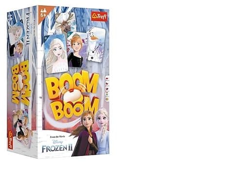 W nowej odsłonie gry Boom Boom gracze starają się zebrać identyczne karty z ulubionymi bohaterami z filmu Disney Kraina Lodu II. Wszyscy gracze w tym samym czasie wymieniają karty z ręki z kartami znajdującymi się na planszy. Po zebraniu zestawu 4 takich samych kart gracz uderza w dzwonek, sygnalizując innym wykonanie zadania. Gracze mogą polować na karty przeciwników – kto okaże się najszybszy? Gracz, który jako pierwszy zbierze odpowiednie stosy takich samych kart, zostaje zwycięzcą! Wiek graczy: 6+ Liczba graczy: 2-4 Czas rozgrywki: 10-20 minut