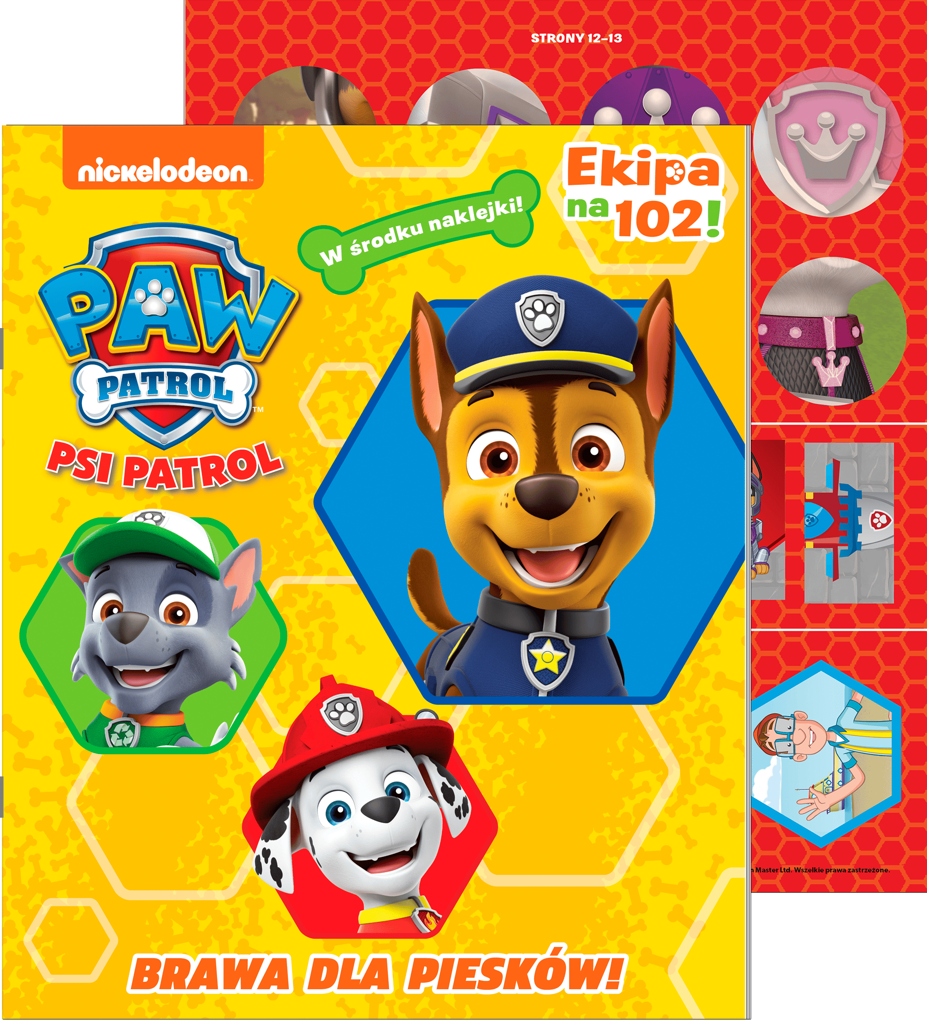 Psi patrol. Ekipa na 102! zawiera zagadki, łamigłówki oraz kolorowanki z ulubionymi bohaterami w roli głównej. W środku również kolorowe naklejki z dzielnymi pieskami! Rezolutne szczenięta Marshall, Rubble, Chase, Rocky, Zuma i Skye oraz dziesięcioletni chłopiec Ryder nigdy nie odmówią pomocy potrzebującym-pomagaj pieskom w ich bohaterskiej misji poprzez rozwiązywanie różnorodnych zadań.