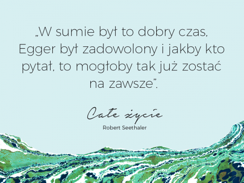 " Całe życie " Roberta Seethalera jest historią Andreasa Eggera, prostego człowieka, poszukującego sensu i piękna w sercu austriackich Alp... Nigdy nie zwątpił w Boga i nie bał się śmierci. Nie potrafił sobie przypomnieć, skąd pochodzi, a koniec końców nie wiedział też, dokąd zmierza. Jednak mógł bez żalu spoglądać na czas między tymi punktami, na swoje życie, z raptownym śmiechem i jednym wielkim zdumieniem... Jak mówił Seneka : " Całe życie człowieka jest tylko podróżą do śmierci ". Warto dołożyć starań, aby ta podróż była udana! Książka godna obecności w każdej domowej biblioteczce! Powieść nominowana w 2016 roku do International Man Booker Prize