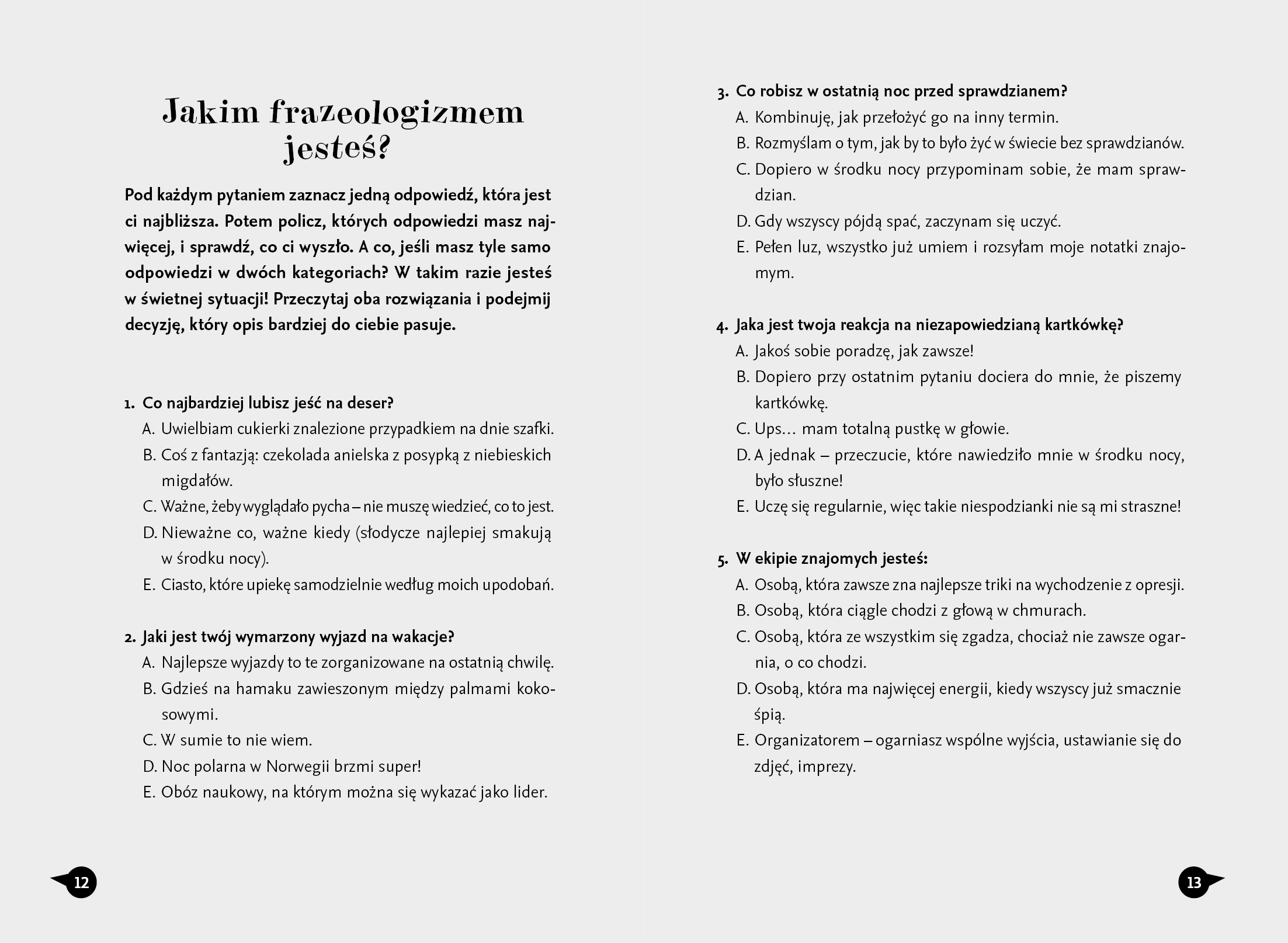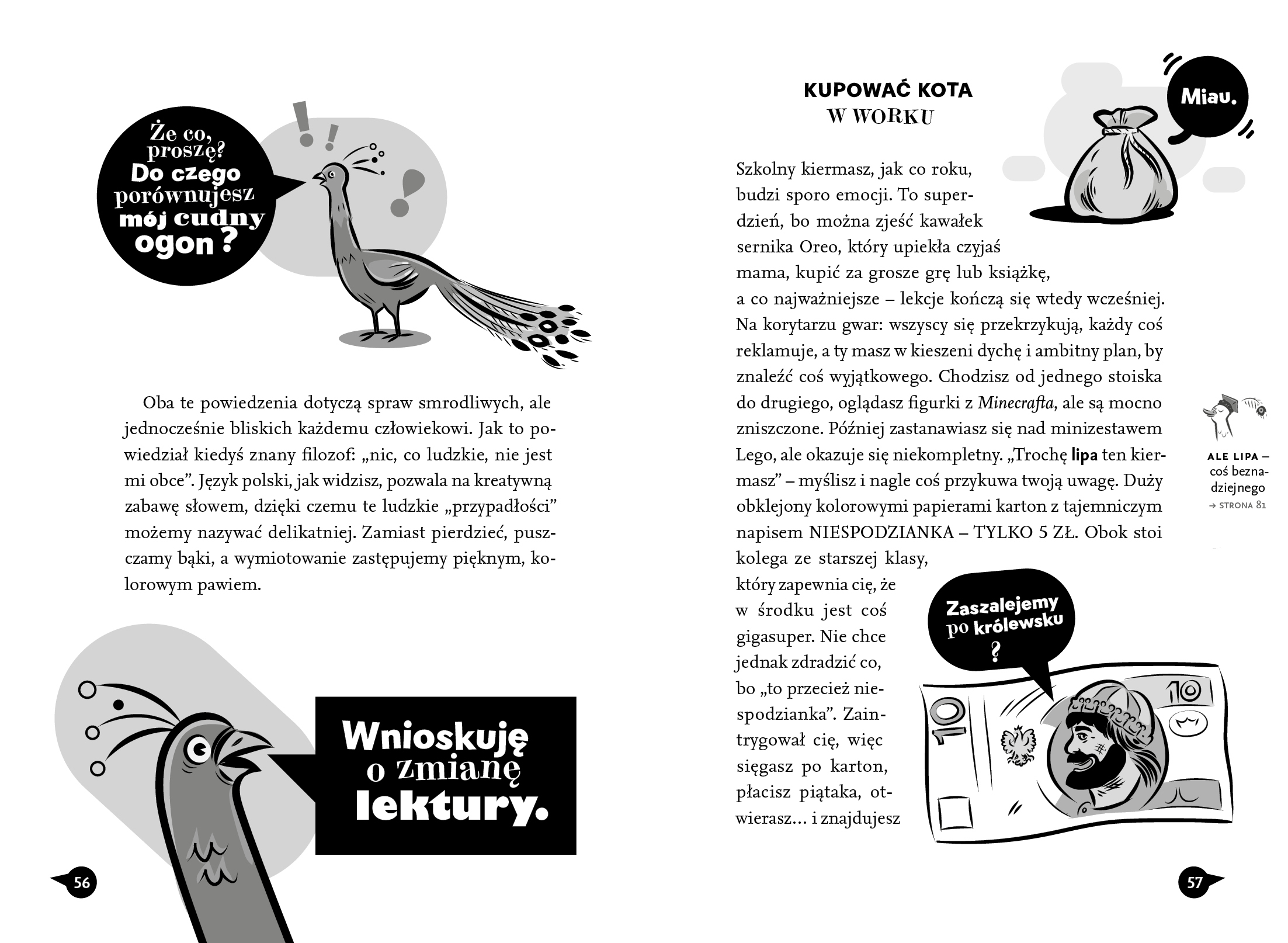 Weronika Zych podchodzi do języka polskiego z przymrużeniem oka, ale z pełnym szacunkiem dla jego bogactwa. Ta książka o języku to idealne połączenie merytorycznego językoznawstwa i lekkiego, młodzieżowego humoru. Autorka ma w zanadrzu dziesiątki ciekawostek językowych, które rozśmieszają do łez i jednocześnie poszerzają wiedzę. Pokazuje, że zrozumienie wszystkich najdziwniejszych powiedzeń nie musi być nudne, wręcz przeciwnie – może być świetną zabawą! To idealna pozycja dla każdego młodego czytelnika, który chce poszerzyć swoją wiedzę o frazeologii polskiej i dowiedzieć się, skąd się biorą polskie idiomy, jednocześnie bawiąc się konwencją.