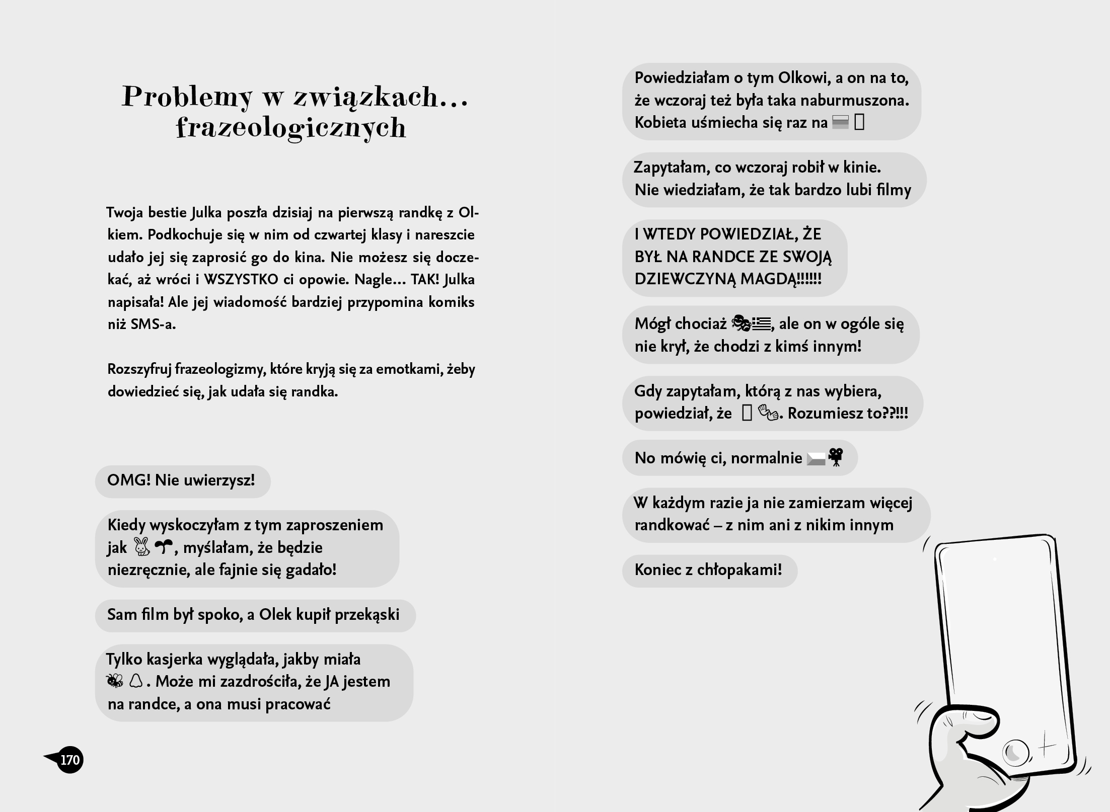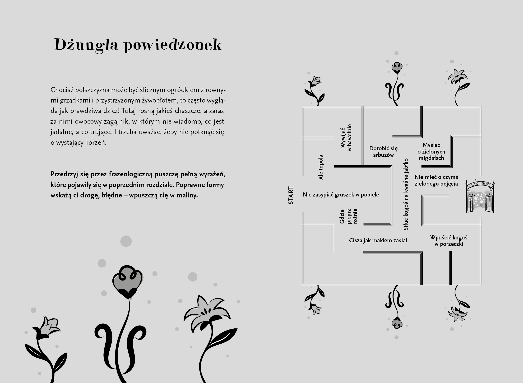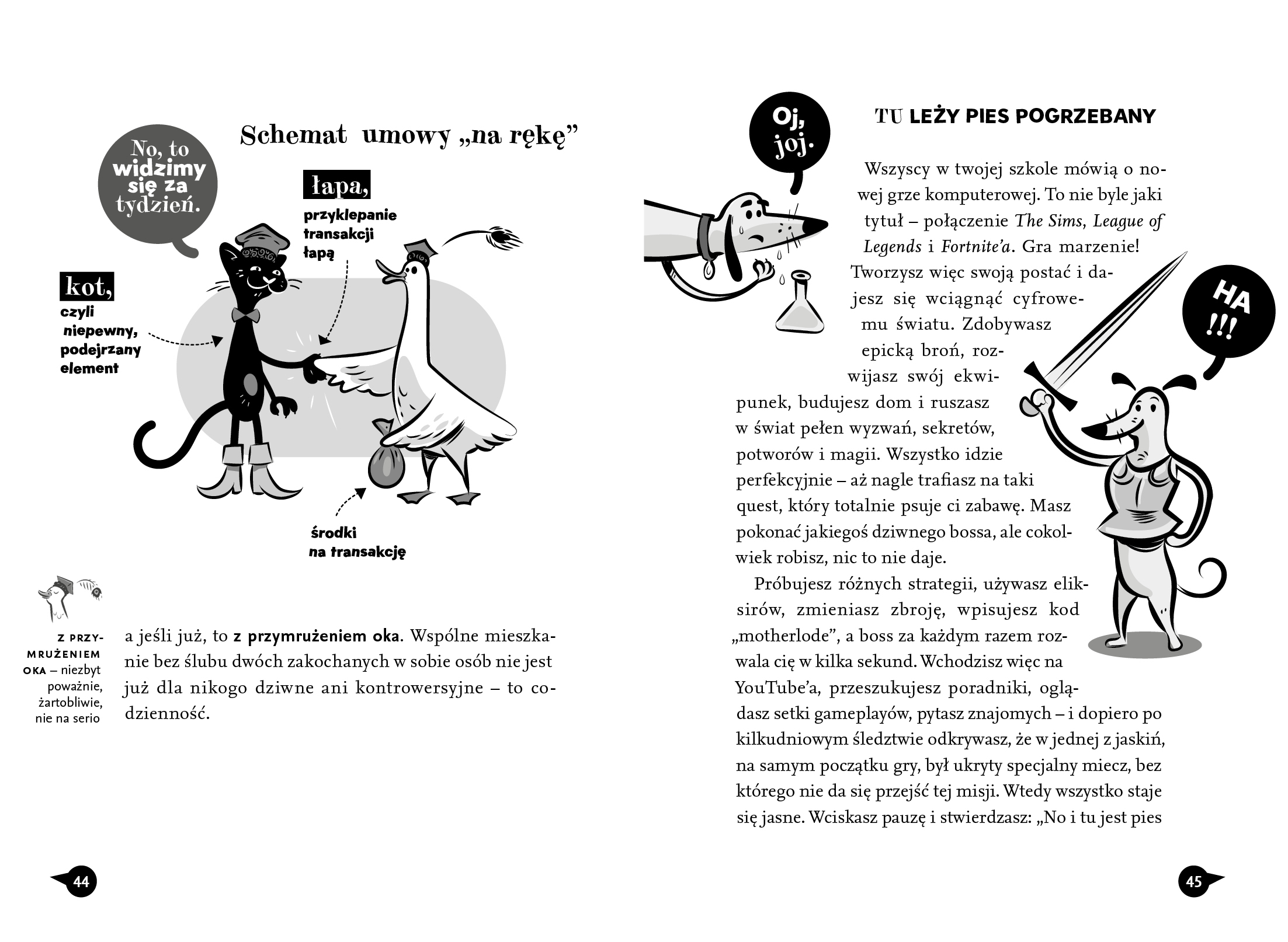 To świetnie wydana książka dla młodszych czytelników, dzięki niej mogą dowiedzieć się skąd wzięło się i co oznacza wiele powiedzonek i zwrotów. Wyjaśni czym właściwie są związki frazeologiczne i po co nam one, czym jest anagram, oraz zachęci do zabawy językiem polskim i główkowania. Mamy tu przedstawiine i wytłumaczone wiele powiedzonek np. dostać kociej mordy, stawać okoniem, nie zasypać gruszek w popiele, tajemnica poliszynela i naprawdę wiele innych, nie starczyło by mi tu miejsca by je wymienić. Książka w zabawny i przyjazny sposób dostarcza wiedzę, zawiera też ilustracje, które dodatkowo umilają lekturę i zachęca by samemu trochę pogłówkować. Mi i córce bardzo się podobała, nie raz uśmiechaliśmy się podczas czytania i dodatkowo zostaliśmy zmobilizowane do ruszyenia mózgownicą. ~ współpraca barterowa