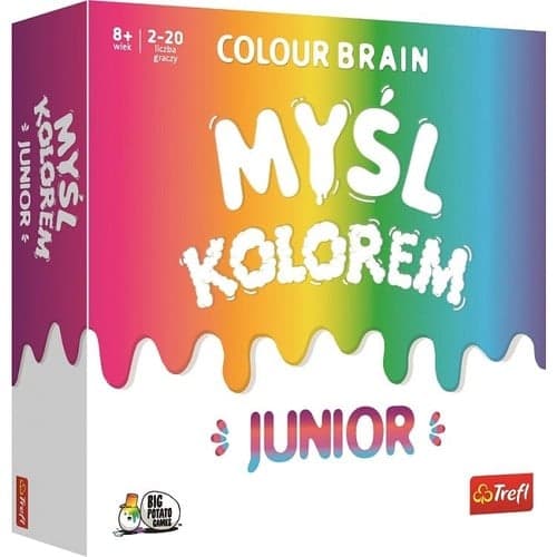 Co powiecie na zwariowaną grę z kolorami w roli głównej? Świat dzieci jest światem kolorów. Bohaterowie bajek, zabawki, otoczenie pełne smaków, tajemniczych urządzeń, świateł i cieni - to wszystko w dziecięcych oczach kipi feeria barw. Myśl Kolorem Junior, to pobudzająca wyobraźnię zabawa - nie tylko dla najmłodszych! Nietypowy quiz, w którym zadaniem graczy jest udzielanie odpowiedzi na pytania za pomocą posiadanych w ręce 11 kart kolorów. Przeczytajcie uważnie pytanie i starajcie się dopasować właściwe kolory. Ten, kto jako pierwszy zdobędzie 10 punktów – wygrywa grę! Informacje dodatkowe: Liczba graczy: 2-20 Czas rozgrywki: 20 min Wiek od 8 lat