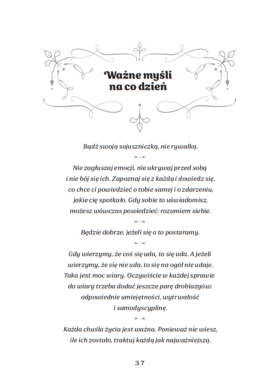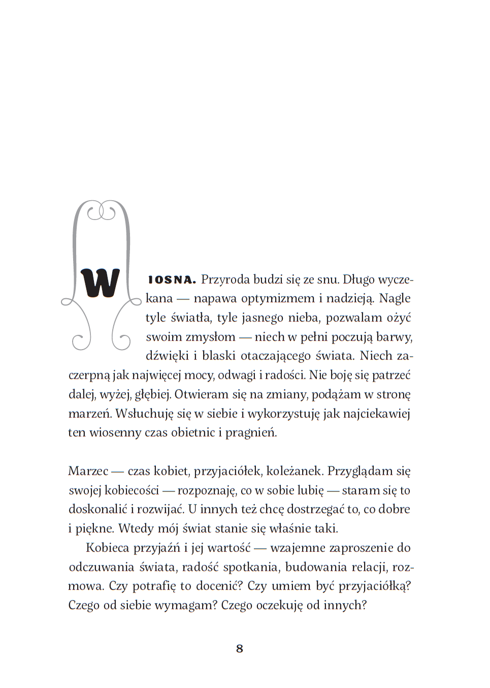 Ewa Woydyłło motywuje do pielęgnowania kobiecości w rytmie zmieniających się pór roku. Zainspiruj się ich energią – radością wiosny, sytością lata, mądrością jesieni, spokojem zimy. Zacznij od małych kroków, zwyczajnych decyzji, prozaicznych wyborów – to z nich rodzą się wielkie zmiany. Zadawaj sobie pytania, zaufaj emocjom, zapisuj myśli i nie zapominaj o dobrych afirmacjach – one naprawdę działają.