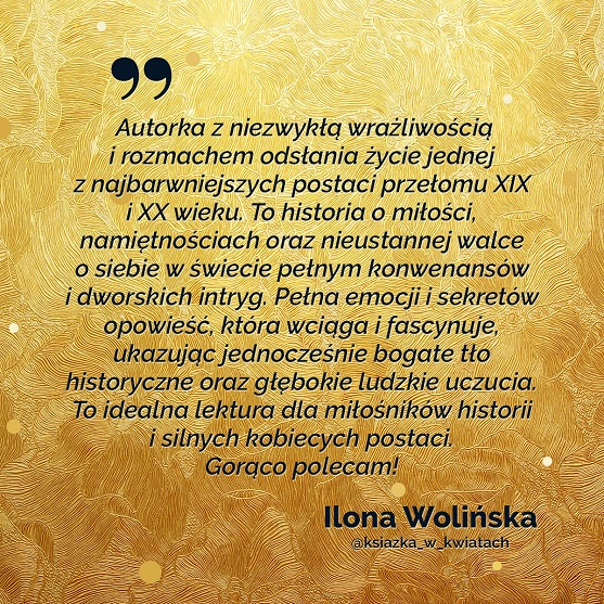 Lubisz czytać o imponujących kobietach, które zapisały się na kartach historii? To właśnie taka opowieść. „Daisy i cesarz” opowiada o księżnej pszczyńskiej, Daisy, która pochodziła z Anglii, jako młodziutka mężatka musiała odnaleźć się w Cesarstwie Niemieckim po ślubie z Hansem Hochbergiem, księciem pruskim. Księżna Daisy to niezwykle ciekawa postać. Autorka ukazała skrót jej życia, ale jednocześnie zdołała oddać charakter tej kobiety w pełnej okazałości. Jedyne, czego mi zabrakło, to pogłębienia jej historii, ale rozumiem, dlaczego autorka zakończyła powieść w tym konkretnym momencie. Podtytuł „Wszystkie namiętności księżnej” może sugerować, że w powieści znajdziemy pełno wątków miłosnych czy romantycznych, tymczasem tak nie jest. To rzeczowa, pełna wdzięku opowieść o księżnej Daisy i jej życiu, owszem pojawiają się wątki miłosne, ale są one bardzo wyważone. Księżna czuła się samotna w małżeństwie (zupełnie mnie to nie dziwi). Doceniam, że autorka pokazała to ze smakiem i bez przesady. Nie ocenia bohaterów, po prostu snuje opowieść i przedstawia fakty. Po lekturze z ciekawością sięgnęłam po dodatkowe informacje o dalszych losach księżnej pszczyńskiej. Po wojnie Daisy naprawdę nie miała łatwego życia. Po przeczytaniu jakiejkolwiek książki historycznej o kobietach z dawnych epok czuję wdzięczność za nasze czasy, nikt nie wybiera nam mężów, poślubiamy z miłości, a nie z powodu rodu czy polityki. Tytułowe „namiętności” Daisy to także jej pasje: zaangażowanie w politykę, troska o ludzi, miłość do piękna (otaczanie się pięknymi rzeczami, wnętrzami, kwiatami, ogrodem) oraz zamiłowanie do organizowania przyjęć. Przede wszystkim ukazana została jej miłość do ludzi. Mimo przynależności do arystokracji, potrafiła zejść „na ziemię”, okazać empatię i pomagać potrzebującym. Być może dlatego, że pochodziła ze zubożałej angielskiej rodziny, więc zaznała zarówno skromniejszego życia, jak i tego arystokratycznego, którym chciała się podzielić z innymi. Imponujący jest jej upór i gotowość do działania, chociażby wtedy, gdy podczas I wojny światowej rzuciła się w wir pomocy rannym żołnierzom w szpitalach (doczytałam, że również w trakcie II wojny nie pozostała obojętna). Odwiedzała chorych, „zwykłych” ludzi, choć mąż i cały dwór jej to odradzali i kompletnie nie rozumieli tego, co ona wyprawia. Daisy całe życie poszukiwała swojego miejsca. Jej historia jest przejmująca, jak mówi cytat z książki: „Dla Niemców była Angielką, dla Anglików, Niemką”. A ja odnoszę wrażenie, że ona po prostu była sobą, kobietą z sercem rozdwojonym między dwa kraje. Jej los nie był łatwy, ale Daisy miała w sobie ogromną siłę, by iść przez życie z podniesioną głową, sprzeciwiając się konwenansom i robiąc to, co uważała za słuszne. W tle pojawia się też wątek I wojny światowej, życie w podzielonej Europie oraz losy Wilhelma, króla Prus i cesarza Niemiec. Autorka przywołuje postać Wilhelma i trudów, jakie znosił od pierwszego dnia narodzin. Jego życie nie należało do prostych, zmagał się z niepełnosprawnością i odrzuceniem przez matkę, a także pozostałych bliskich. Historia tego małego chłopca mnie dotknęła. Z Daisy połączyła go przyjaźń i wzajemny szacunek. Wilhelm ją podziwiał i liczył się z jej zdaniem. Daisy potrafiła zaczarować każdego: piękna, mądra, silna, walcząca o dobro. Tło historyczne zostało przedstawione lekko i zrozumiale, na tyle, by czytelnik mógł dobrze zorientować się w realiach tamtych czasów. To świetna propozycja dla tych, którzy zwykle omijają książki historyczne w obawie przed „ciężką formą”. Autorka posługuje się przystępnym językiem i prowadzi fabułę sprawnie, bez zbędnych, nużących opisów. Narracja jest konkretna, skupiona na życiu Daisy, przerywana opowieścią o Wilhelmie. „Daisy i cesarz” to historia kobiety, która miała odwagę być sobą oraz cesarza, który również robił to, co uważał za słuszne dla swojego narodu (czy te działania były faktycznie dobre…?). Oboje walczyli o swoje ideały i wartości.