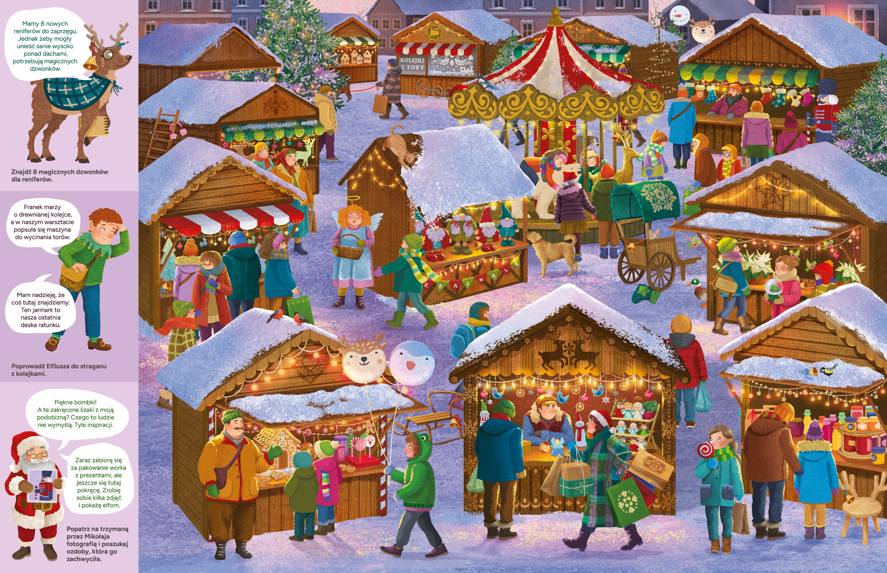 Czas działać! Detektyw Rudolf potrzebuje twojej pomocy. Dołącz do jego drużyny i razem z elfem i Mikołajem rozwiąż świąteczne zagadki: znajdź zagubione przedmioty i przejdź poplątane labirynty.