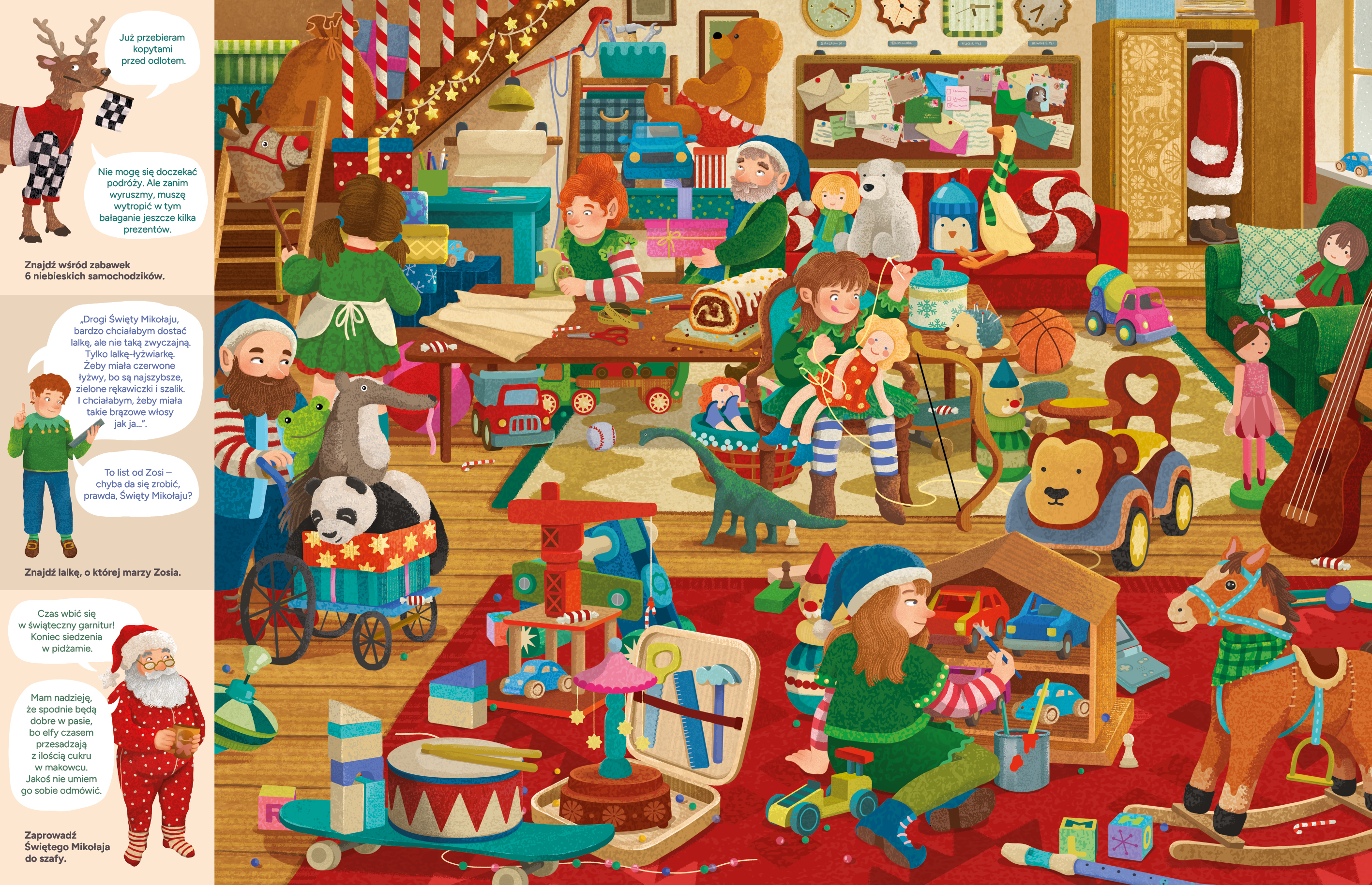 To jedna z najbardziej kreatywnych, angażujących i po prostu zabawnych książek świątecznych, jakie zobaczyłam w tym sezonie. Zabawę zaczynamy od planów rodziny Gwiazdkowskich na tegoroczne Święta i nagłego zamieszania u św. Mikołaja: brakuje listów, magicznych dzwonków i reniferów do zaprzęgu! Czyżby Święta miały zostać odwołane? Na szczęście do akcji wkracza detektyw Rudolf. Jeśli Twoje dziecko wkroczy do akcji pomocowej, to czekają go dziesiątki detektywistycznych zadań do wykonania: labirynty, wyszukiwanki, zagadki. Trzeba np. znaleźć 11 jabłek, 10 gwiazdek, dziecko z rozwiązaną sznurówką, kota‑podejrzanego i psa Piernika, połączyć pierniczki z odpowiednimi foremkami, przeprowadzić Elfiusza przez świąteczny labirynt czy szukać ozdób, które robią wrażenie nawet na samym Mikołaju. Zadania są różnorodne i pochłaniają na długie godziny! I oczywiście na końcu czeka na nas gra planszowa Co mnie w zachwyciło w książce: - Masa zadań – dziecko rozwija spostrzegawczość, koncentrację, myślenie logiczne, pamięć i kreatywność. - Bogate, kolorowe ilustracje, od których trudno oderwać wzrok, duży format, duże kartonowe strony. Książka wytrzyma baaardzo długo. - Temat, który naprawdę angażuje i zbliża do siebie, razem czytamy ale i aktywne działamy razem z dzieckiem. Książka posiada ogromny potencjał – nie tylko dla zabawy, ale też jako narzędzie wspólnego rozwoju i budowania relacji. Jeśli szukacie tytułu, który oderwie dzieci od ekranu i wciągnie całą rodzinę w świąteczną przygodę to właśnie znaleźliście !
