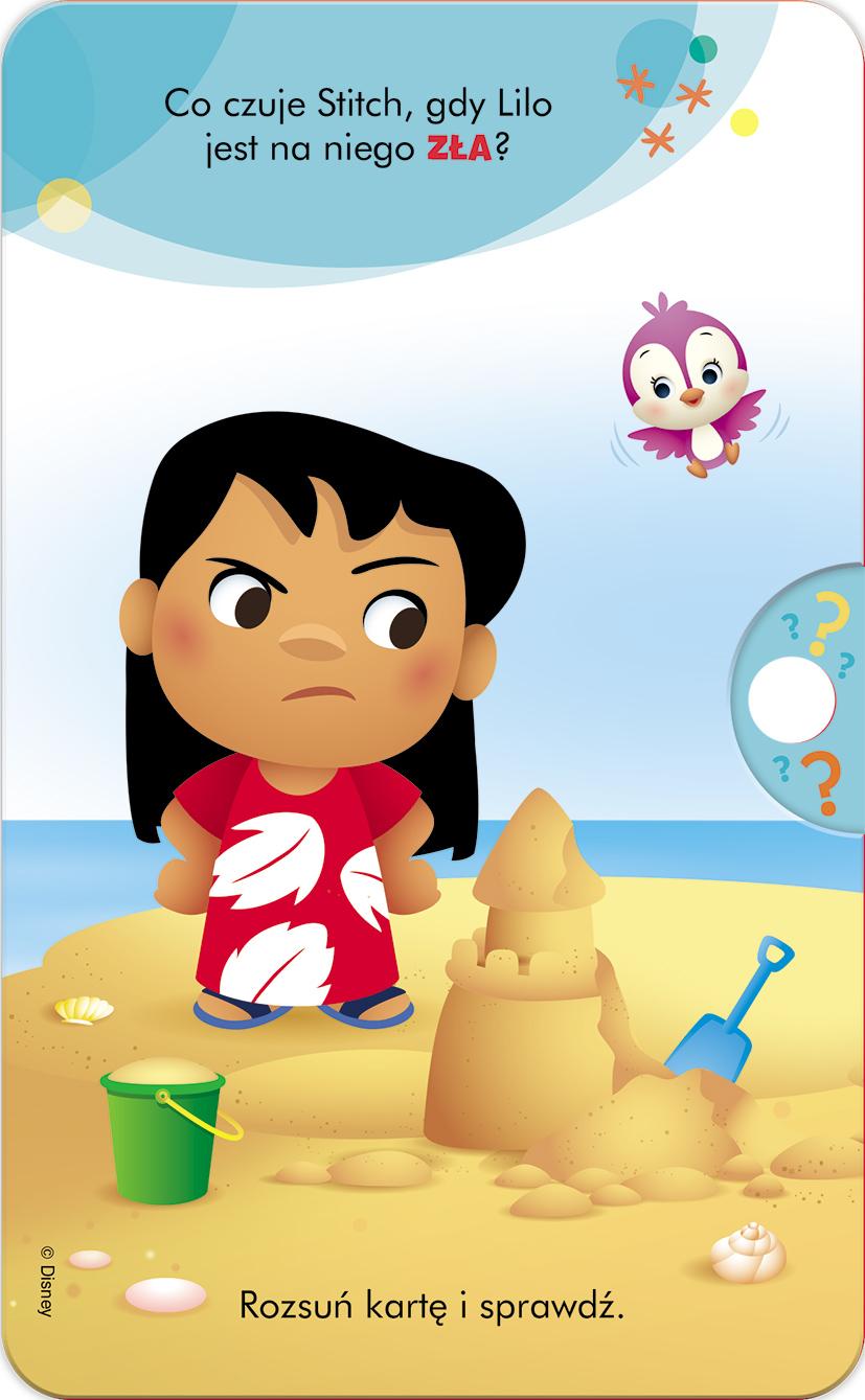 Disney Maluch. Karty Emocje Odkryj z dzieckiem fascynujący świat emocji! Dzięki tym rozsuwanym kartom czeka was wspaniała rozrywka w towarzystwie ulubionych bohaterów Disneya. Co czuje Anna, gdy Elsa ją łaskocze? A co czuje Stitch, kiedy Lilo jest na niego zła? Rozpoznajcie na obrazku emocję, a potem rozsuńcie kartę i sprawdźcie odpowiedź. Wspólna zabawa stwarza okazje do rozmów o towarzyszących nam na co dzień uczuciach i pozwala zrozumieć, że wszystkie są ważne. Zestaw zawiera 15 dwustronnych kart wykonanych z trwałych materiałów, co zapewni dłuuugie godziny fantastycznej zabawy.