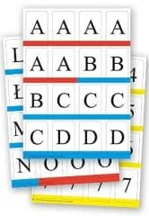Zestaw kartoników z literami, cyframi i znakami matematycznymi. Wielkie i małe litery drukowane z kolorystycznym oznaczeniem samogłosek i spółgłosek ułatwiają naukę tworzenia i odczytywania sylab i wyrazów. Kartoniki z cyframi 0-9 i liczbą 10 oraz kartoniki ze znakami równości, większości i mniejszości ułatwią kształtowanie umiejętności matematycznych.