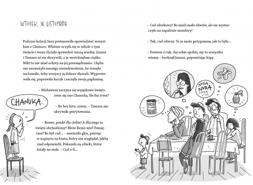 Literatura młodzieżowa często oscyluje między tematami pierwszej miłości, podróży czy problemów szkolnych. Ten rodzaj literatury angażuje młodych ludzi i często dotyczy ich szczególnych doświadczeń w okresie dorastania. Niepowtarzalne historie i przygody pomagają im lepiej zrozumieć świat.Mam dla was genialną książkę, opowiadająca o patchworkowej rodzinie żydowskiej, która jest wyjątkowa nie tylko ze względu na swoją tematykę ale przede wszystkim na sposób w jaki łączy codzienne problemy i życie nastolatków z edukacyjnym aspektem kultury żydowskiej.W „Dzienniku Rut" autorstwa Miriam Synger nie brakuje aspektu edukacyjnego, choć muszę przyznać, że jest on podany w sposób bardzo subtelny. Rut, uczęszczająca do polskiej szkoły, często musi wyjaśniać żydowskie zwyczaje kolegom, co staje się okazją do nauki zarówno dla postaci w książce, jak i dla nas, czytelników. I to jest kapitalny wątek edukacyjny. Autorka unika jednak moralizatorstwa, zamiast tego stawiając na autentyczność i naturalne wplatanie wiedzy w fabułę i to mi się bardzo podoba.Każdy w tej książce świetnie się odnajdzie, bo oprócz tego książka porusza również typowe problemy nastolatków, takie jak relacje z rówieśnikami, zmagania z własną tożsamością i pasje, które kształtują młodych ludzi. Rut, mająca teatralne aspiracje, zmaga się z wrednymi koleżankami, ale także znajduje wsparcie w swojej patchworkowej rodzinie. Singer pokazuje, że to, co nas różni, może być źródłem siły i inspiracji.Do tego ilustracje Tadeusza Marka idealnie dopełniają tekst, nadając mu dodatkowego wymiaru. Jego rysunki przypominają trochę ilustracje komiksowe, które są zawsze przyjazne dla młodego odbiorcy,a jednocześnie potrafią oddać intymne momenty między bohaterami.Ta książka to przede wszystkim zwykła opowieść o zwykłej rodzinie, w której brakuje miejsca na własną przestrzeń - przy siedmioosobowej rodzinie trochę trudno o to zadbać