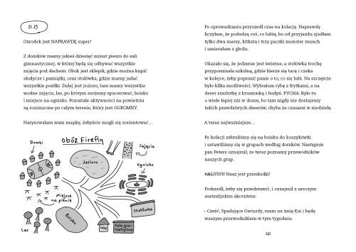Okay, wszyscy już chyba wiedzą, że wraz z moją młodszą siostrą, jesteśmy totalnymi fankami Lottie Brooks.Nie inaczej jest tym razem, najnowsza część wpadła w nasze ręce i jak zwykle poprawiła humor na wiele dni.Mam wrażenie, że ta część powinna być czytana przed świąteczną wersją ale to nie szkodzi.Lottie pierwszy raz będzie nocować tydzień poza domem i strasznie się tym stresuje.Do tego dochodzą zawirowania wokół chłopców i dojrzewania.Nowi wrogowie, nowi przyjaciele, nowe przygody.Mnóstwo zabawy, przypałów i śmiechu.Tradycyjnie znajdujemy ilustracje stworzone przez "Lottie" rękami autorki, które wzbogacają historię i wprowadzają dodatkowe elementy humorystyczne.Zjedzone Kit Katy, Frapuccino i frytki to już niemal standard (chociaż w wersji świątecznej Lottie odkryłaFerrero Rocher) oczywiście nie mogło zabraknąć chrupek cebulkowych i serowych.Przez poprzednie tomy się zastanawiałam, czemu Lottie nie wpadła na to, że brat Antoine'a tłumaczy specjalnie źle ale już tutaj kuleczka wskoczyła na swoje miejsce i u dziewczyny zabłysnęła przysłowiowa żaróweczka nad głową.Z pewnością jest to jedna z najlepszych serii dla młodzieży 9+ i nie tylko.Tej dziewczyny nie da się nie lubić!A jeśli jesteście rodzicami nastolatków (tych poniżej 16) to koniecznie przeczytajcie nim dacie dzieciakom, będziecie przynajmniej wiedzieć o czym mówią gdy nazwą Was żandarmami zabawy, krindżowymi czy crashami.