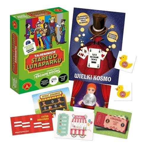 Kupując ten zestaw trafiacie do starego lunaparku, gdzie czeka na Was nie lada gratka! Festyn i gra terenowa ogłoszona przez Dyrektora Parku. Nagrodą jest wstęp na okolicznościowy bankiet pełen arcymistrzów iluzji, tajemniczych wróżek i wspaniałych akrobatów. Tylko że ten lunapark skrywa niejedną tajemnicę, którą będziecie musieli rozgryźć…