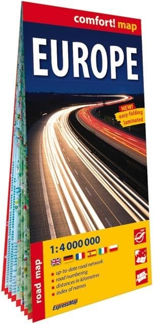 Z dwustronnie laminowaną, wygodną w składaniu mapą samochodową Europy podróż po kontynencie będzie prawdziwą przyjemnością.