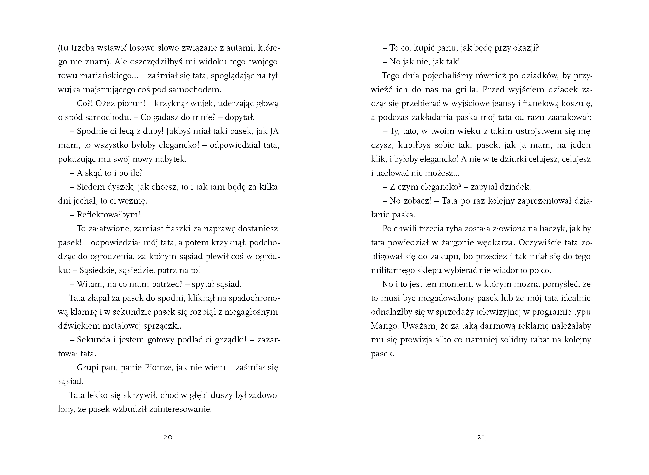 Przeczytałem „Farmazony. O tym, jak stałem się własną matką” i miałem wrażenie, jakby autor rozmawiał ze mną przy kuchennym stole. Ta książka nie udaje mądrzejszej, niż jest – a jednak trafia celnie. Czułem śmiech, lekkie zakłopotanie, a momentami zaskakującą czułość wobec własnych przyzwyczajeń i lęków. Eryk Bielawski pokazuje codzienność w sposób szczery, momentami absurdalny, ale zawsze bardzo ludzki. Czytając, złapałem się na tym, że sam staję się swoim „rodzicem” – czasem surowym, czasem ciepłym.