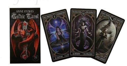 Rewelacyjne karty do tarota. W talii znajdują się 78 karty o wymiarach 110 x 60 mm. Oryginalna instrukcja w języku angielskim, niemieckim, hiszpańskim. Karty do Tarota ANNE STOKES zawierają rysunki ze świata fantasy - smoki, jednorożce, czaszki, wampiry i nietoperze. Na każdej karcie znajdują się dzieła sztuki Anne Stokes. Niesamowite wzory i portrety życia fantasy ilustratorki pojawiły się na wielu okładkach książek i gier, jej sztuka została powszechnie uznana. Wszystkie postacie na awersach są wielkim dziełem sztuki. To unikalna talia. Wyprodukowany przez hiszpańską firmę Fournier. Małe Arkana są w stylu "marsylskim"