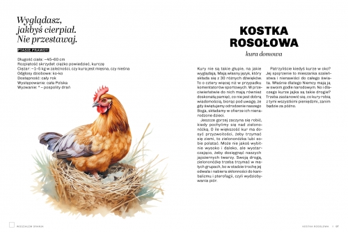 "Głupie ptaki Polski. Przewodnik świadomego obserwatora" to książka, która z miejsca przyciąga uwagę każdego, kto interesuje się awifauną naszego kraju, bądź po prostu ma ochotę na trochę prześmiewczego humoru. Autor wprowadza nas w świat ponad 100 różnych gatunków ptaków, które zamieszkują Polskę, łącząc wiedzę przyrodniczą z ironicznym komentarzem. Jednym z najbardziej intrygujących aspektów tej książki są pytania, które autor stawia czytelnikom. Który ptak wykorzystuje swoje ofiary jako trofea, nabijając je na pal? Jaki ptak potrafi zabić jastrzębia poprzez swoje odchody? Kto jest ofiarą sikorek, które wydziobują mózgi innych ptaków? Co takiego robi kaczka, że sprawa mogłaby trafić do prokuratury? Takie pytania pojawiają się nie tylko dla zszokowania czytelnika, ale także, by ukazać szokujące i mało znane aspekty życia ptaków. Jednak, jak autor sam zauważa, zainteresowanie tymi tematami może świadczyć o nietypowych zainteresowaniach czytelnika, sugerując, że być może powinien on zastanowić się nad swoim zdrowiem psychicznym. Mimo to, jeśli decydujemy się na lekturę, trafiamy w odpowiednie miejsce. Książka wciąga nas w świat ptaków, który potrafi być niezwykle uzależniający. Przewodnik ten oferuje również praktyczne porady dotyczące obserwacji ptaków. Jak uniknąć odmrożenia podczas zimowych eskapad? Jak bezpiecznie fotografować ptaki, aby nie skończyć z kolekcją zdjęć gałęzi? Autor dzieli się wiedzą na temat wyboru i umiejscowienia karmnika, ostrzegając jednocześnie przed możliwymi konsekwencjami dla naszego zdrowia psychicznego. Nie brakuje tu również wskazówek dotyczących lokalizacji i czasu, w którym możemy spotkać różne gatunki ptaków. Opisy ptasich zachowań, odgłosów i interakcji są pełne humoru, ale jednocześnie bardzo pouczające. Dowiemy się, jak odróżnić śpiew wróbla od stukania dzięcioła czy krakania kawki. Każdy z tych ptasich bohaterów ma swoje unikalne cechy, które autor opisuje z błyskotliwą ironią. Podsumowując, "Głupie ptaki Polski. Przewodnik świadomego obserwatora" to książka, która wciąga, bawi i uczy jednocześnie. Jest to idealna lektura nie tylko dla zapalonych ornitologów, ale także dla tych, którzy szukają w książkach połączenia wiedzy i humoru. Przygotujcie się na to, że ptaki mogą stać się waszą nową, zaskakująco fascynującą obsesją.