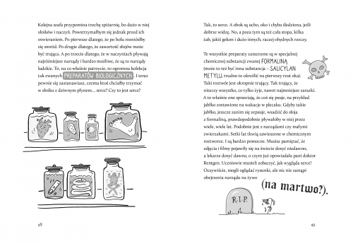 Czy wysłałabyś swoje dziecko na obóz Glutologiczny?Noo raczej!„Glutologia. Jak się nie dać mikropaskudom, wstrętnym robalom i podstępnym chorobą" - druga fantastyczna książka Adama Mirka, zaraz po „Bebechach".Książkę można podzielić na trzy obszaryI obszar - jest to książka przygodowa - akcja opowiadania rozgrywa się w Villi Vitalis. 8 śmiałków zgłasza się na obóz glutologiczny pod opieką dr Renaty Rentgen i farmaceutę-piekarza Panakracego Kukułkę. Narracja w książce jest napisana w pierwszej osobie, co jest fantastyczne, bo bezpośrednio bierzesz udział w obozie.Zwroty akcji, dreszczyk emocji i dużo śmiesznych sytuacji spotka cię w Villi Vitalis. A na sam koniec przy rozstaniu, bardziej niż pewnie jest to, że odczujesz smutek, że to już koniec i czas do domu.II obszar to nauka - kompendium wiedzy medycznej.Adam w sposób lekki i prosty definiuje i wyjaśnia każde medyczne zagadnienie. Począwszy od prostych jak; zadrapanie, stłuczenia po trudne jak chociażby depresja, czy nowotwórZnajdziecie w książce metody na zasypianie. Dowiesz się o częściach wymiennych swojego ciała, które możesz oddać innym. O pięciu najrzadszych chorobach na całym świecie. Czy jak natura odbudowuje ciało.I wiele innych ciekawostek.Dzieci dużo pytają, a często my dorośli mamy trudność z prawidłową odpowiedzią. Albo zbywamy dzieciaki, lub odpowiadamy w skomplikowany i nie zrozumiały sposób. A tu mamy wszystko podane na tacy. Co więcej, gdy będziecie mieć nurtujące was pytanie możecie śmiało wysłać na adres [email protected] wiadomość i Adam chętnie na nie odpowie. Pytanie takie jak: Dlaczego wydaje się, że mózg zamarza, gdy zjemy za dużo lodów? Lub czy można zjeść tyle marchewek, że skóra zmieni kolor na pomarańczowy?III obszar, to życiowe wartości - wartość jakim jest zdrowie. Książka, która opisuje zdrowe nawyki, w taki sposób, że przy rozdziale o insektach odłożysz na chwilę książkę i pójdziesz umyć ręce. Dosłownie!Wyobrazisz sobie zdrowe wypieki Panakracego i skorzystasz z dostępnych przepisów.A okulary o specyficznym kształcie - symbol empatii w stosunku do innych - okulary, które pokazują więcej niż „gołym okiem" możesz zobaczyć. A mianowicie, z czym inny ludzie dookoła nas się zmagają, a na pierwszy rzut oka tego nie widzimy. Choroby takie jak cukrzyca, migrena, czy deoresja.Adam swoimi publikacjami zarówno w formie książki, jak i filmików pokazuje, że nauka jest fascynująca! A ucznie się może być jedną z przyjemniejszych form spędzania wolnego czasu. Brzmi dziwnie? To przekonaj się sam
