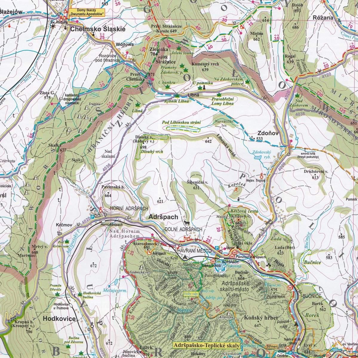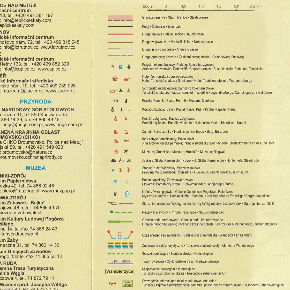 Mapa turystyczna obejmująca obszar Broumovska oraz Gór Stołowych.