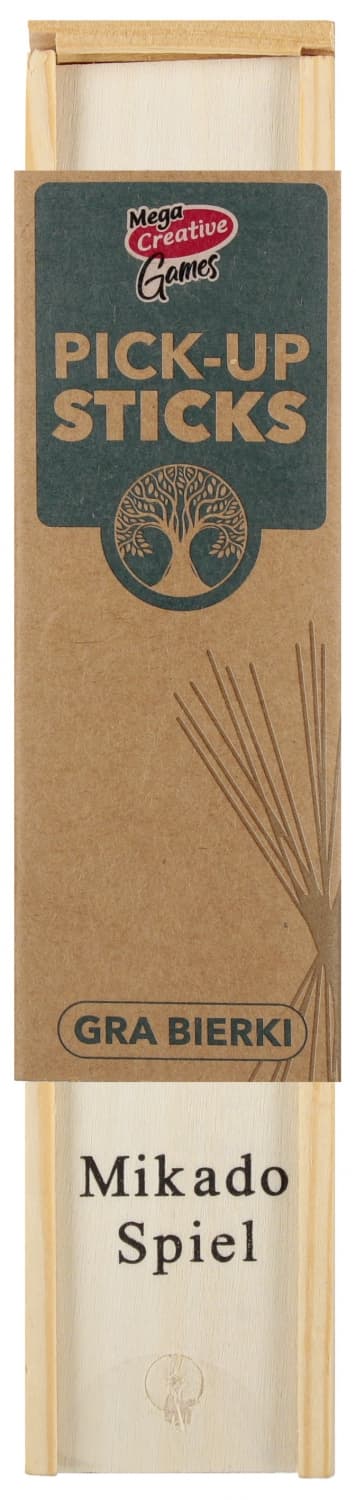 Zasady gry: chwyć w dłoń wszystkie bierki, otwórz dłoń tak aby wszystkie się rozsypały, zadaniem jest zebrać jak najwięcej patyczków, zabierając je jeden po drugim tak aby nie poruszyć innego bierka, jeśli poruszysz zabierając bierkę inne bierki, automatycznie tracisz kolejkę i grę kolejny z graczy. Gra wykonana z drewna. Zawartość zestawu: gra bierki.
