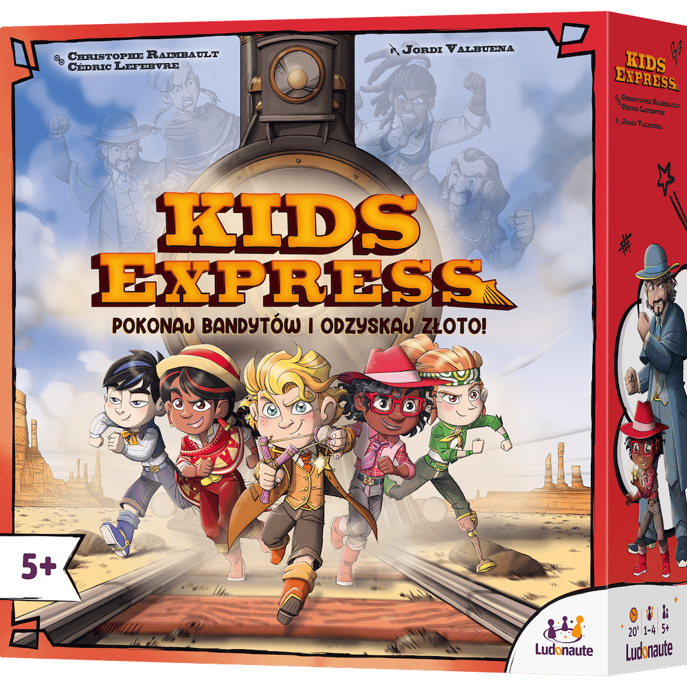 Kids Express to powrót do świata kultowego Colt Expressu – tym razem w wersji dla najmłodszych! W tej wesołej planszówce opartej na współpracy wcielamy się w drużynę dzielnych dzieciaków, które wspólnie starają się udaremnić ucieczkę złodziejom złota. Podczas zabawy będziemy skradać się przez pociąg tak, by nie zwracać na siebie uwagi, nie raz wystrzelimy z procy, by odstraszyć bandytów, a przy tym spróbujemy odzyskać jak najwięcej cennych bagaży!