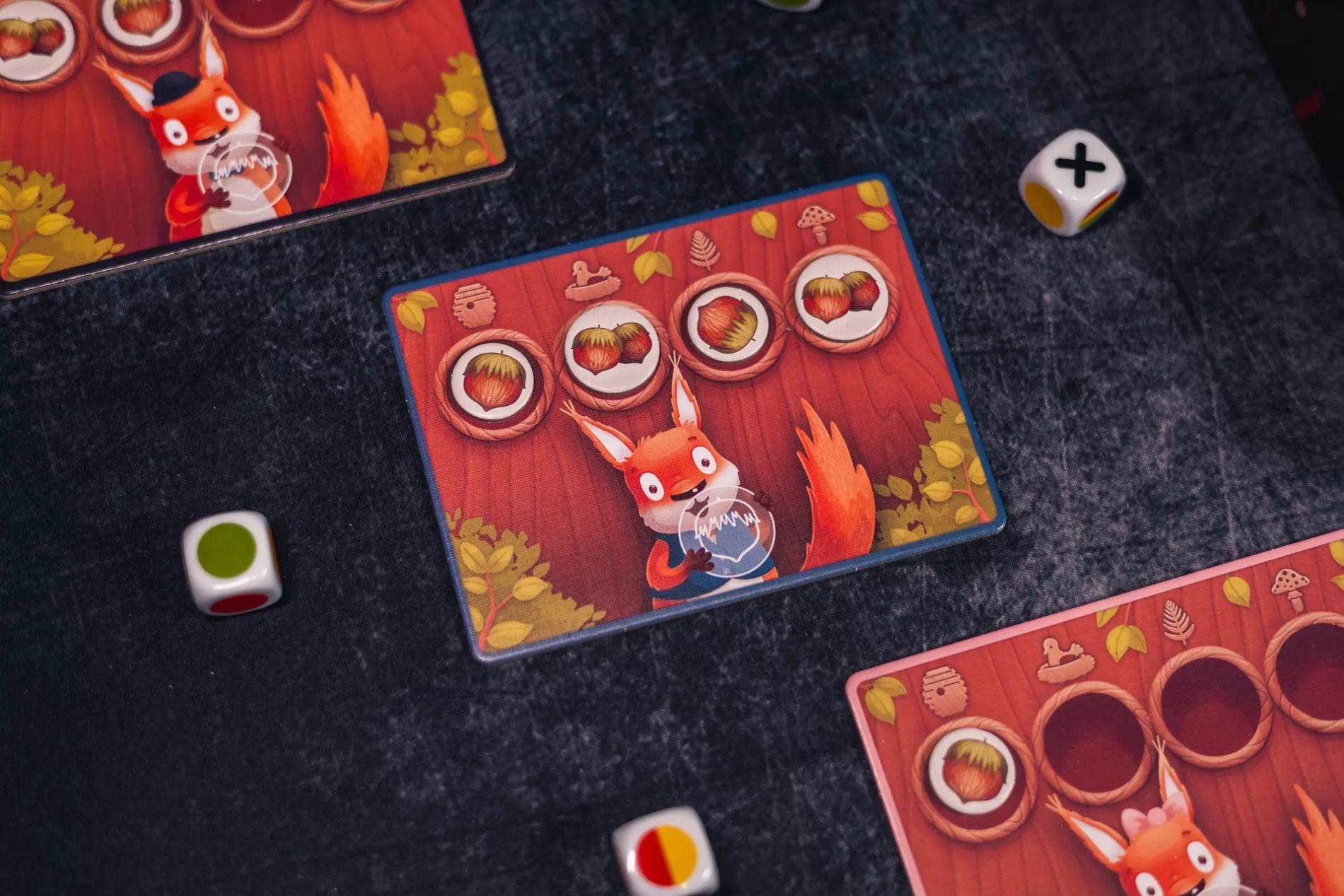 Podczas zabawy musicie uważać na sowę i lisa, które będą próbowały przeszkadzać wam w zbieraniu orzeszków.