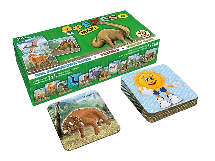 Gra dla najmłodszych MEMO z obrazkami dinozaurów.