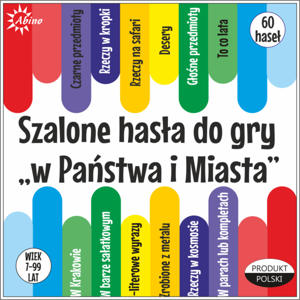 60 haseł na 12 kartach do znanej i lubianej gry w Państwa i Miasta.