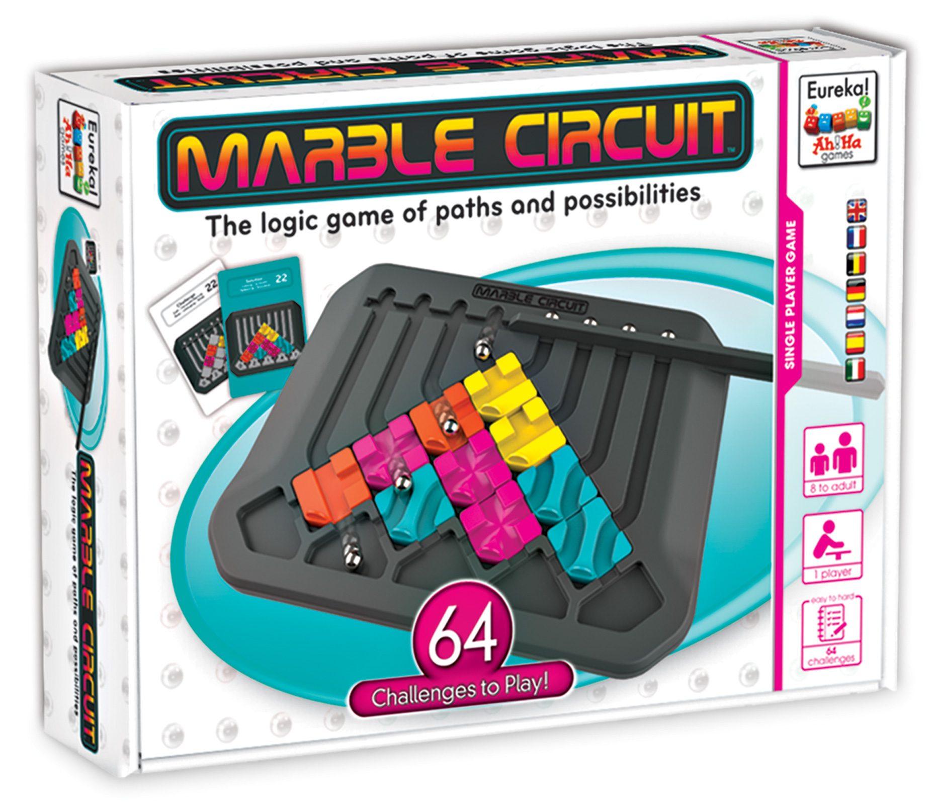 ZAWARTOŚĆ: plansza do gry brama 10 płytek 8 metalowych kulek 64 karty z wyzwaniami i rozwiązaniami instrukcja