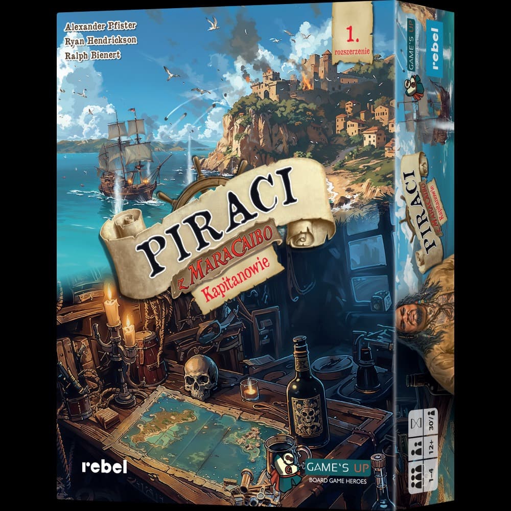 Piraci z Maracaibo: Kapitanowie to rozszerzenie wprowadzające 12 wyjątkowych, siejących grozę hersztów, których specjalne zdolności sprawią, że rozgrywki będą wymagały jeszcze więcej taktycznego myślenia. Gracze będą mogli też wyposażyć swoje okręty w działa, które pozwolą zdobywać karaibskie twierdze, a wraz z nimi sławę i bogactwa. Z kolei nowe plansze eksploracji i karty ulepszeń oraz mechanika handlu rumem wprowadzą rozgrywki  na zupełnie nowe wody.