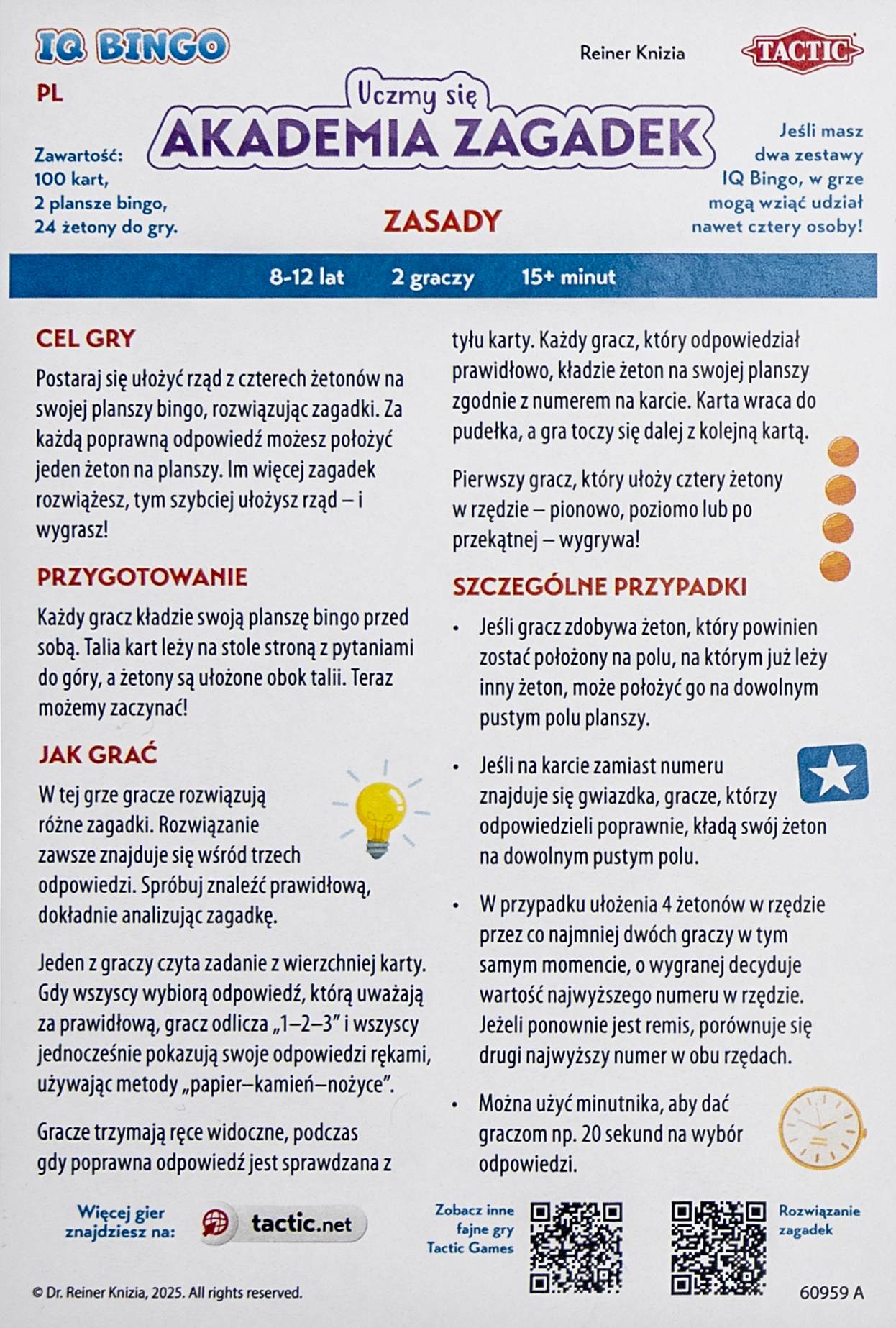 Szczegółowe informacje na temat gry Gra Uczmy się Akademia Zagadek IQ Bingo