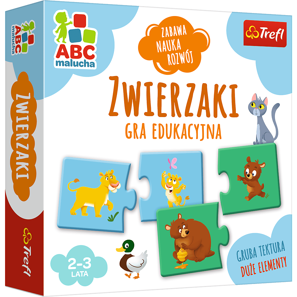 Podczas wesołej zabawy polegającej na łączeniu puzzlowych elementów mały gracz odkrywa, jak wyglądają zwierzęta i ich młode.