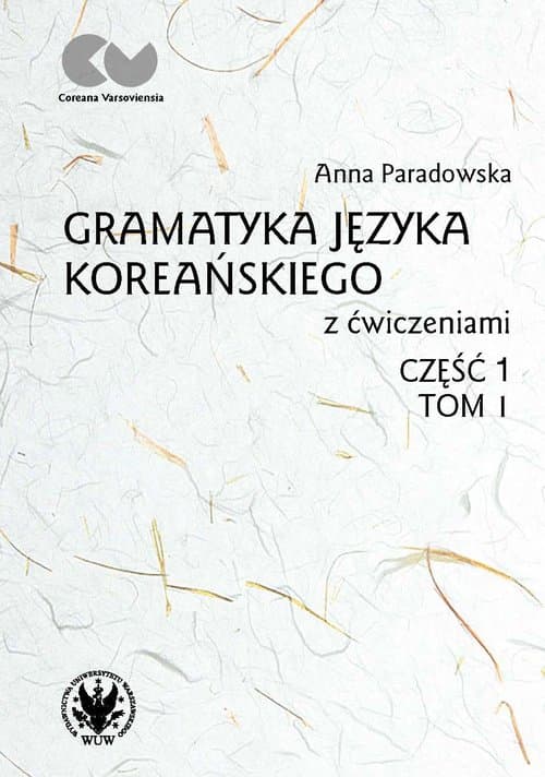 Akademicki podręcznik do nauki języka koreańskiego z praktycznymi ćwiczeniami, zaopatrzony w komentarze i słowniczki, przeznaczony dla studiujących koreanistykę bądź uczących się języka koreańskiego na poziomie uniwersyteckim. Materiał językowy, na którym opiera się wykład systemu gramatycznego koreańszczyzny, ilustruje reguły użycia form gramatycznych i wyrażeń, kategorii gramatycznych oraz schematów składniowych. 3 tom w ramach serii „Coreana Varsoviensia”. Korean Language Grammar with Exercises. Part I, Volume 1 An academic Korean language handbook with practical exercises, commentaries and glossaries for Korean language students or those learning Korean at a university level. The language material used to explain Korean language system illustrates grammar rules, phrases, grammatical categories and syntax patterns. The book is the third volume in the „Coreana Varsoviensia” series.