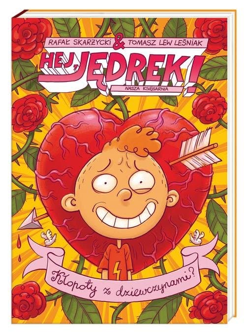 Dziesięć lat to najlepszy wiek na przygodę! Przynajmniej według Jędrka i jego kumpli: Witka, Grubego i Karoli. A ponieważ z podziwu godną łatwością pakują się w tarapaty, na brak atrakcji nikt nie może narzekać. Niespodziewany przyjazd uczniów z Włoch tuż przed zabawą karnawałową elektryzuje całą szkołę. Wśród gości są piękna Sofia i prawdziwy pożeracz serc Paolo. Amor nie zamierza próżnować – jego strzały będą siać spustoszenie w otoczeniu Jędrka. Trafiona zostanie nawet siorka, pieszczotliwie zwana Wyjcem. Czy sprawdzi się powiedzenie, że w miłości jest jak na wojnie? „Hej, Jędrek!” to seria dla czytelników szukających wciągającej akcji, nieszablonowych bohaterów i szalonego humoru! Rafał Skarżycki – zawodowo pisarz i scenarzysta, prywatnie mąż, tata dwóch córek i właściciel psa. Publikuje od blisko dwudziestu lat i tylko dzięki temu, że debiutował jako siedemnastolatek, nie jest jeszcze w wieku emerytalnym. Los zetknął go z Tomkiem Leśniakiem w liceum — znajomość zaowocowała przyjaźnią i profesjonalną współpracą, początkowo komiksową. W głowie Rafała narodziły się takie postaci komiksowe jak: Jeż Jerzy, Tymek czy Mistrz. Oprócz scenariuszy komiksów pisze także scenariusze filmowe, opowiadania oraz powieści. Seria „Hej, Jędrek!” pozwala mu łączyć to, co jako twórca kocha najbardziej: literaturę i komiks. Tomasz Lew Leśniak – zawodowo rysownik i reżyser animacji, prywatnie mąż, tata dwóch córek i właściciel kota. Debiutował wspólnie z Rafałem Skarżyckim, którego rozpraszał podczas lekcji, namawiając do pisania kolejnych scenariuszy. Nadał wygląd postaciom komiksowym takim jak: Jeż Jerzy, Tymek czy Mistrz. Obecnie, oprócz rysowania komiksów, zajmuje się animacją i reżyserią filmów animowanych (niektórzy z was mogą się już domyślać, kto pisze scenariusze...). Seria „Hej, Jędrek!” to dla niego okazja, by udowodnić, że jest nie tylko świetnym komiksiarzem, lecz także wybornym ilustratorem.