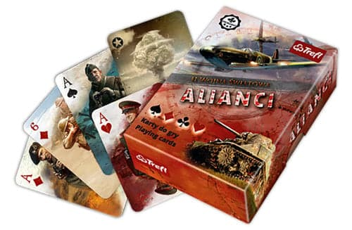 Oddajemy w Państwa ręce talię kart poświęconą siłom Aliantów w okresie II wojny światowej. Był to najstraszniejszy konflikt w dziejach ludzkości i jesteśmy dalecy od gloryfikowania wojny jako takiej. Co najwyżej składamy hołd tym, którzy podjęli się walczyć za tych, którzy sami nie mogli się bronić. Być może część z Państwa odkryje w sobie tę, właściwą dzieciom i zatracana stopniowo przez dorosłych, zdolność do emocjonowania się wspaniałymi rysunkami – czołgów, samolotów, żołnierzy i ich dowódców. Tak po prostu. Szczerze tego życzymy. Nie trzeba być miłośnikiem historii, żeby docenić wielka historię. Zrobiliśmy wszystko, by choć trochę ja Państwu przybliżyć. Najlepiej jak to potrafimy – za pomocą kart.