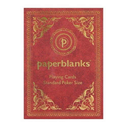 • Karty do gry marki Paperblanks • Talia zawiera 52 karty do gry, 2 jokery i 1 kartę z historią wzoru. • Wykonane z wysokiej jakości kartonu o gramaturze 300 gsm z certyfikatem ekologicznym FSC. • Gładka powłoka zapewniająca wygodne używanie • Nadruk z metalizowanymi elementami na odwrocie kart • Zapakowane w eleganckie i trwałe pufełko z wytłaczanymi wzorami podkreślonymi metalicznymi zdobieniami. • Wysokość 89 mm, szerokośc 63 mm.