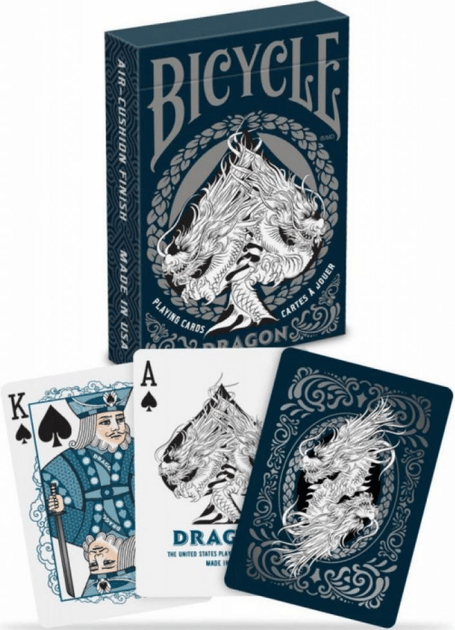 Karty do gry Bicycle Dragon inspirowane smokami, które należą do najpopularniejszych mitologicznych stworzeń na świecie i są częścią opowieści w wielu kulturach od Europy po Chiny. Smok może być symbolem mocy, siły i szczęścia dla tych, którzy są tego godni i często odgrywa ważną rolę jako strażnik skarbów. Unikatowy design wszystkich elementów talii inspirowany magicznym światem fantasty sprawi, że każda rozgrywka będzie magiczna. Opakowanie z tłoczeniami 3D i srebrzystą folią sprawia, że każdy chciałby ją mieć.
