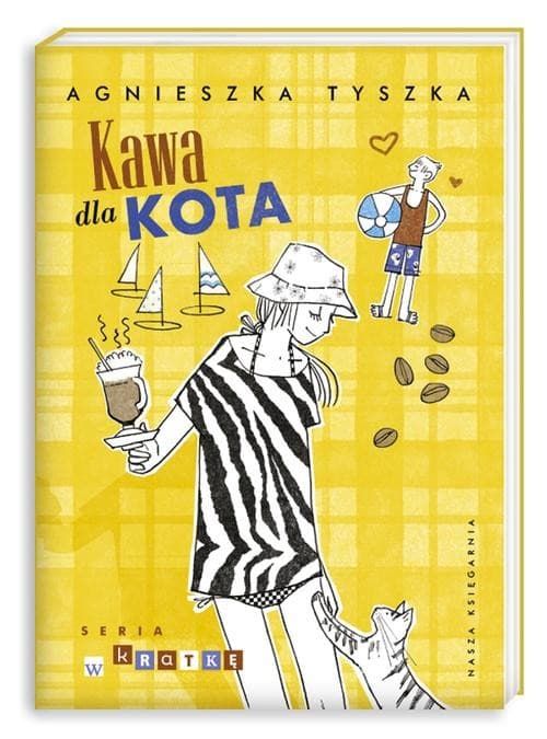 Nowa rola starszej siostry i opiekunki do dzieci, samodzielny pobyt nad morzem, podczas którego Nela poznaje szalenie miłego Kota pijącego kawę, a także trudne spotkania z tatą to nowe wyzwania, z którymi dziewczyna będzie musiała się zmierzyć. Czy poradzi sobie ze stanem zakochania i będzie odpowiedzialną opiekunką? Jak poukłada sobie skomplikowane relacje z tatą? Na szczęście z pomocą przychodzi pani Lila i jej nieoceniona „Księga kwiatów”, a także Artysta – ojczym dziewczynki. To dzięki nim wszystko stanie się o wiele łatwiejsze... „Kawa dla kota” to kontynuacja książki „M jak dżeM”.