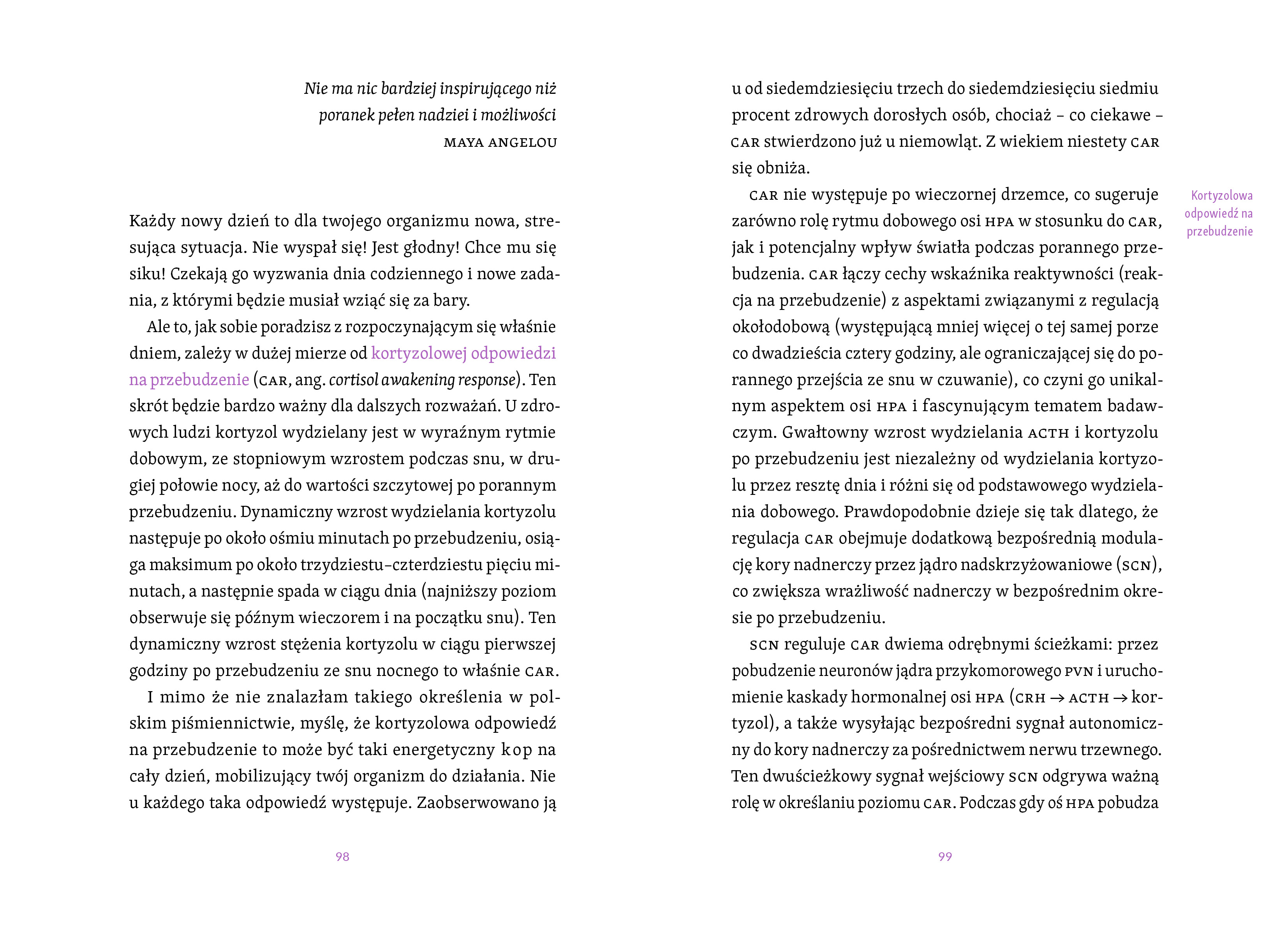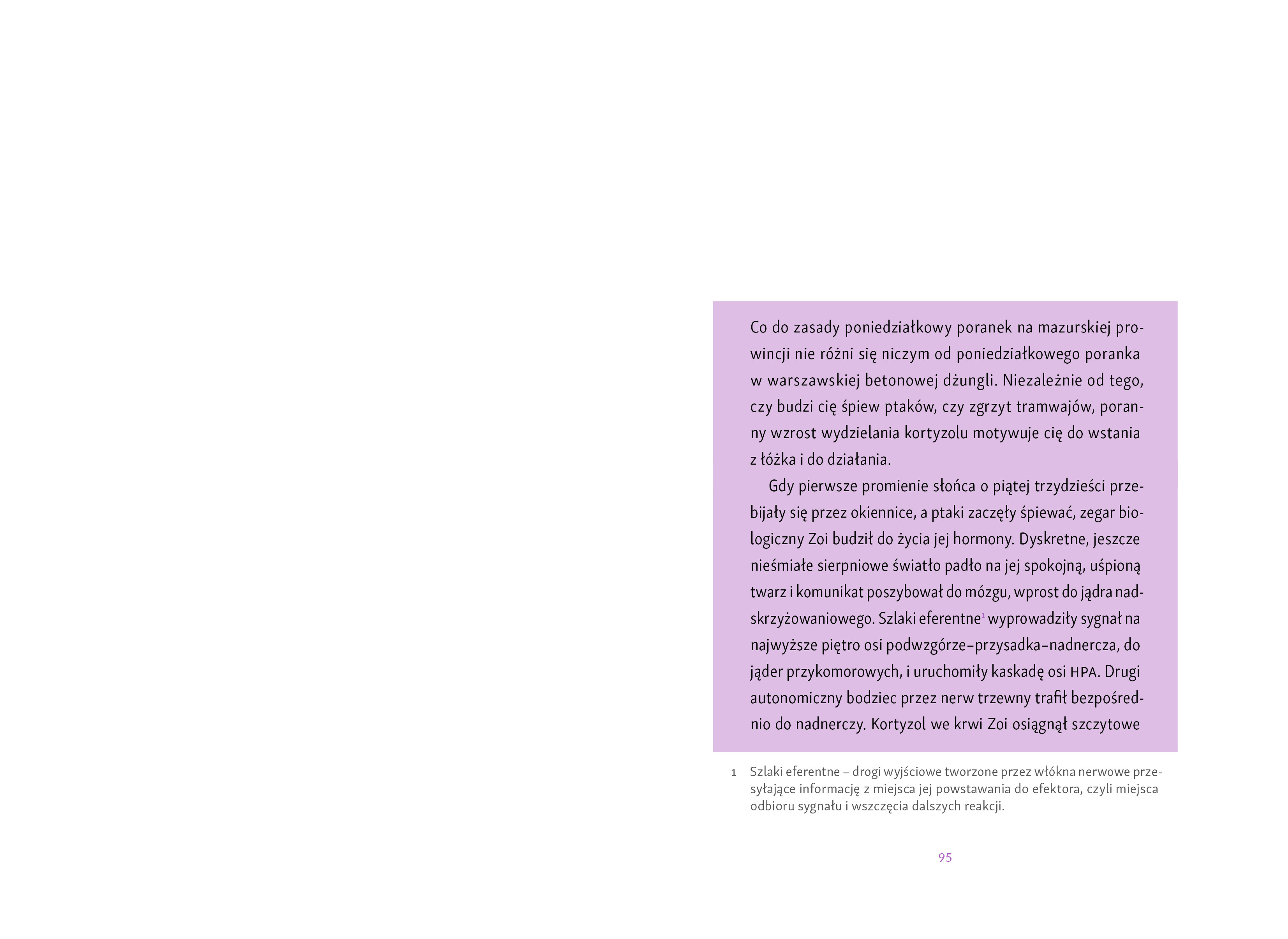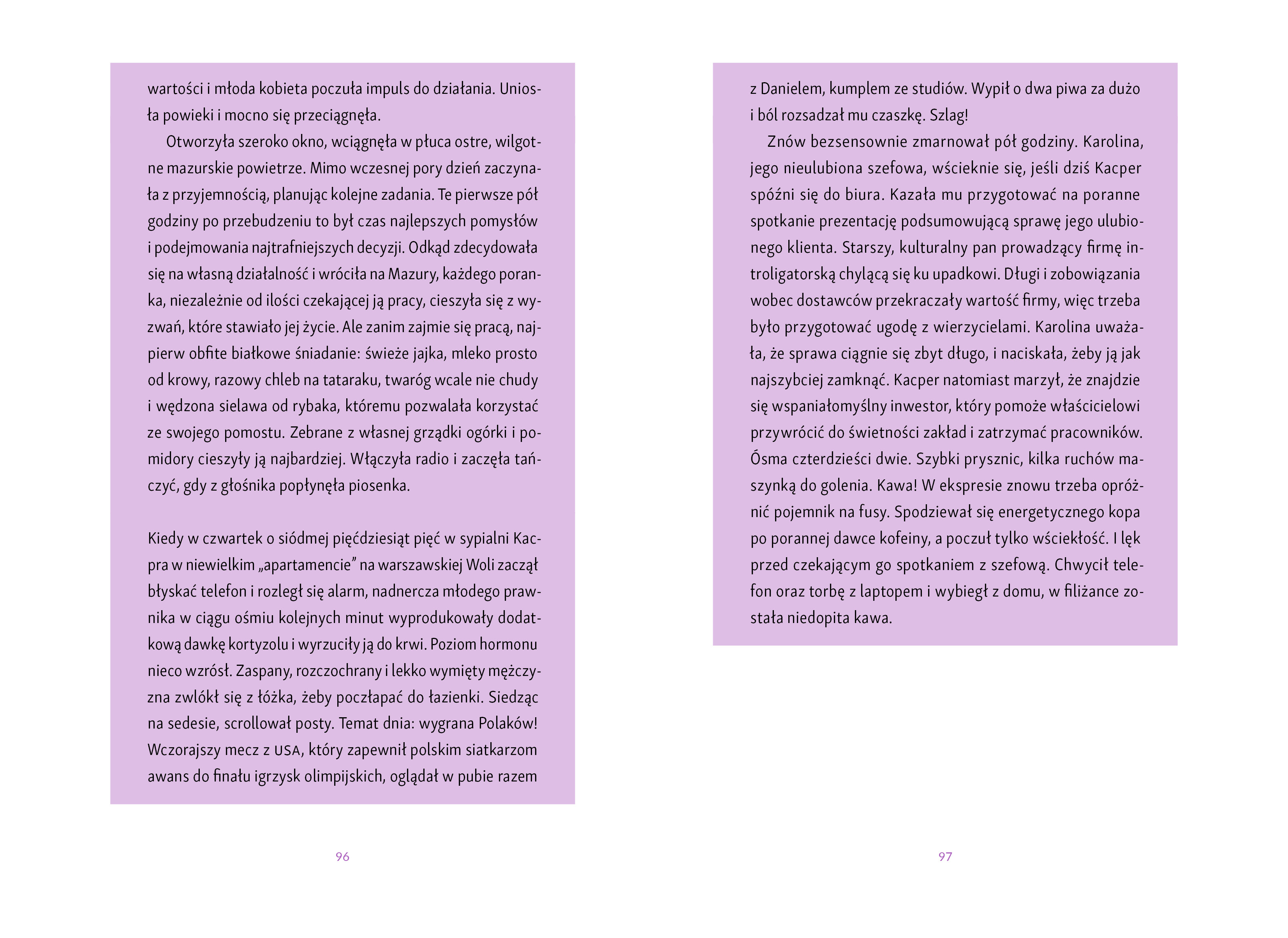 Przeczytałam tę książkę jednym tchem. Świetnie napisana, konstrukcja podziału tekstu na sekcje merytoryczne i opowieści z życia pomaga zrozumieć tę fascynującą opowieść nawet laikowi, nie mającemu zawodowo nic wspólnego z medycyną. Czyta się bardzo lekko i przyjemnie, jako barwną opowieść demaskującą internetowe mity na temat kortyzolu i dającą świeże, pozytywne spojrzenie na to , czym ten hormon jest i co możemy zrobić, aby był naszym przyjacielem i wsparciem. Gorąco polecam tę publikację. Wyrazy szacunku i podziwu dla Autorki.
