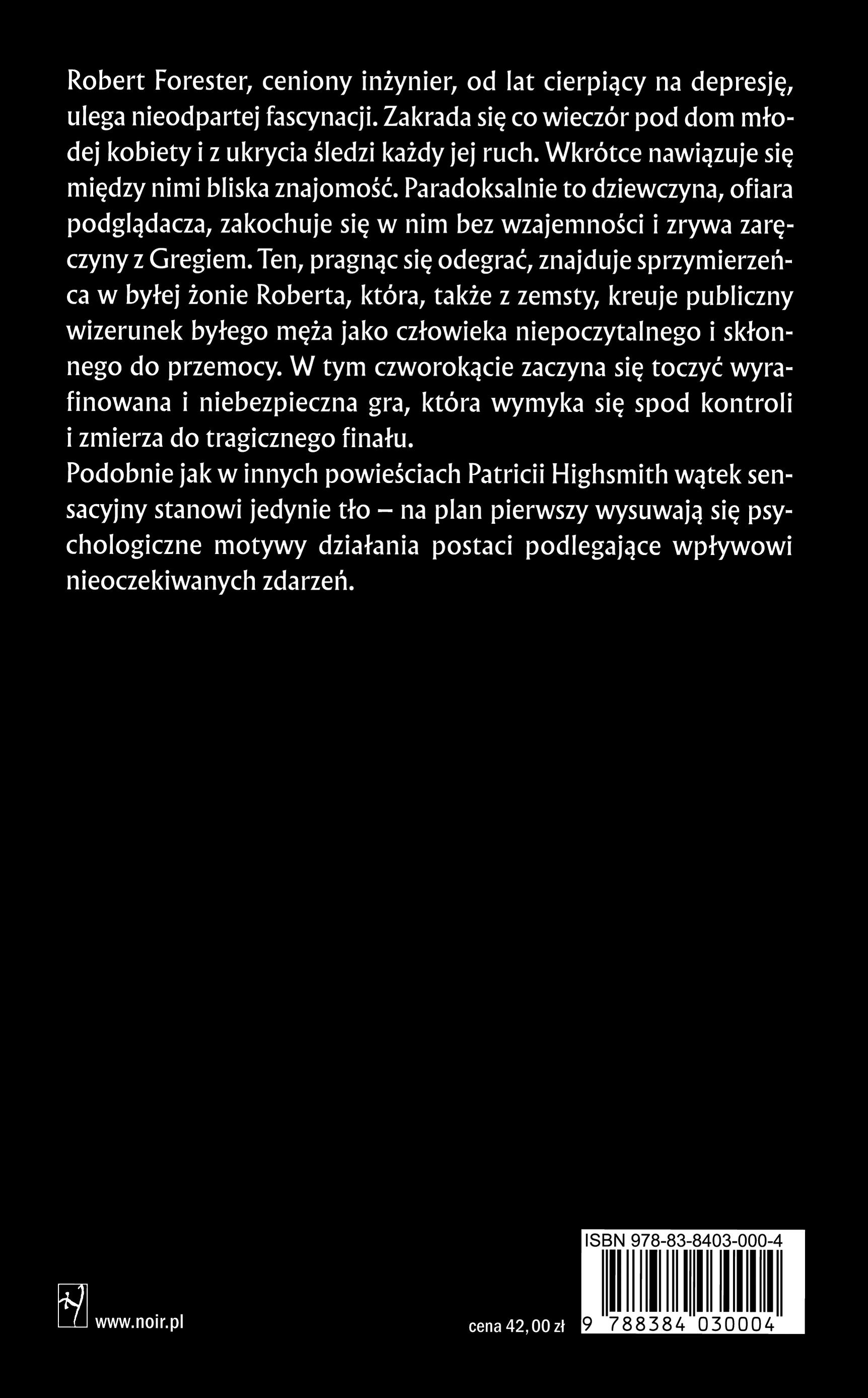 To niesamowite uczucie, kiedy powieść napisana dekady temu okazuje się tak bardzo współczesna, tak genialnie absorbująca i zaskakująca. Tak właśnie miałam z “Krzykiem sowy” Patricii Highsmith. Dzięki nowemu wydaniu mogłam zapoznać się z powieścią, która u nas ukazała się po raz pierwszy ponad dwadzieścia lat temu, a na rynku anglojęzycznym aż sześćdziesiąt! Gatunkowo jest to coś pomiędzy powieścią kryminalną a thrillerem psychologicznym, w którym pobrzmiewają nuty dramatu i tragedii antycznej. Fatalizm, nieuchronność losu, poczucie, że droga idzie tylko w jednym kierunku, a pętla coraz mocniej się zacieśnia to emocje dominujące w tej powieści. I do tego niejasność, niepewność, w którą wersję zdarzeń możemy wierzyć, bo tych jest kilka, w stosunku do siebie sprzecznych. Kreacje postaci (stalkera, pary i byłej żony) są mistrzowsko opisane, każdy z nich ma jakieś cechy budzące niepokój, mogące przerodzić się w coś naprawdę katastrofalnego. Akcja budowana bardzo niespiesznie, ale twisty fabularne, jakie nam serwuje, są solidne, wprowadzają czytelnika w poczucie ciągłej niepewności, a zarazem ogromnej ciekawości. No i przesłanie, te współczesne, o którym wspomniałam - to skłonność społeczności do szybkich sądów, do przyjmowania łatwej hipotezy, która pogłębiana może zniszczyć czyjeś może całkowicie niewinne życie? Bo czy nie powinno być tak, że nie na założeniach, a dowodach powinniśmy się opierać? Bardzo dobra pod każdym względem proza, jestem mocno zaskoczona tym, jak duże zrobiła na mnie wrażenie! Polecam fanom niespiesznych thrillerów psychologicznych, solidnych dramatów.